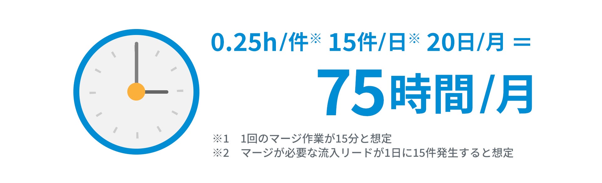 当社の調査では、手動でのマージ作業を継続している企業では、確認作業も含めると1件あたり15分程度の時間を要し、1日15件、月20日間の対応が必要な場合、月間75時間もの工数が発生していることが判明しています。これは専任スタッフの約半人月の業務時間に相当し、企業にとって大きな負担となっています。