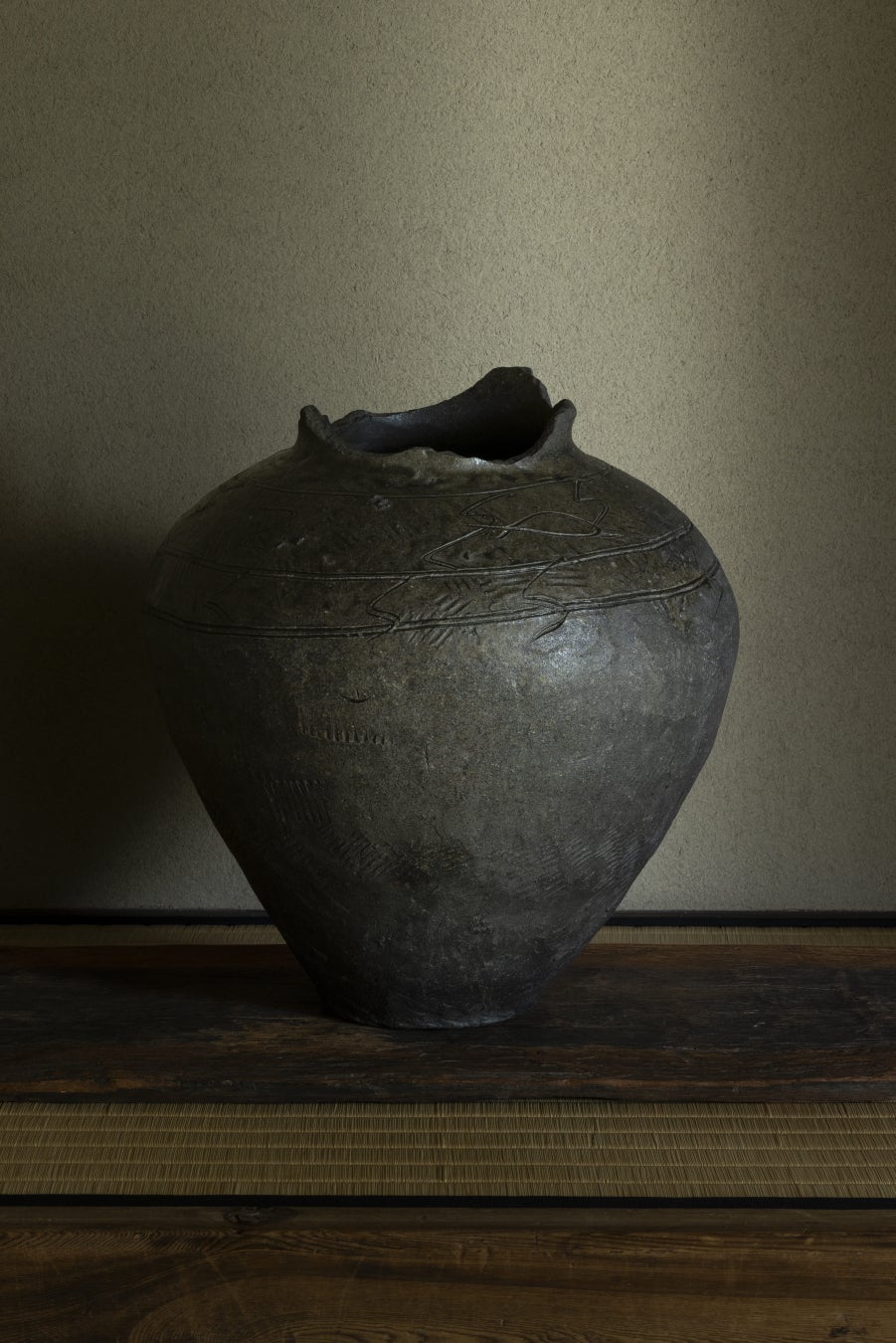 [谷松屋戸田]『渥美魚彫紋大壺』 平安時代後期 陶 Photo by Yoko Taguchi