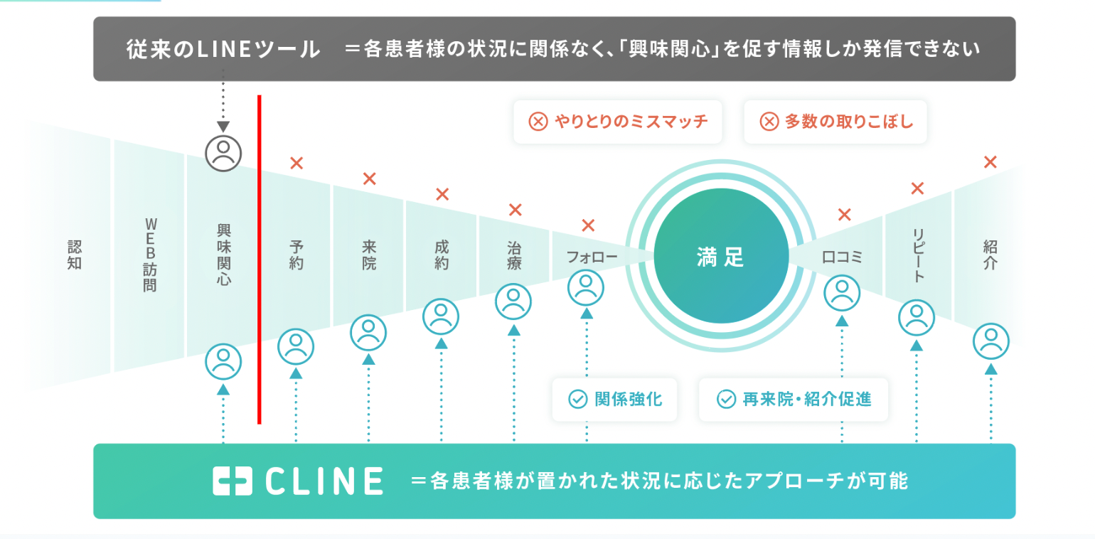 ゆえに大半のクリニックでは、一斉配信による一方的な情報提供など、LINEの運用方法は限られたものだったのです。