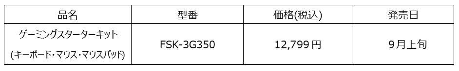 ヤマダホールディングスグループ独占販売「FUNAIブランド」キーボード・マウス・マウスパッドをセットにしたゲーミングスターターキット「FSK-3G350」9月上旬より全国で発売