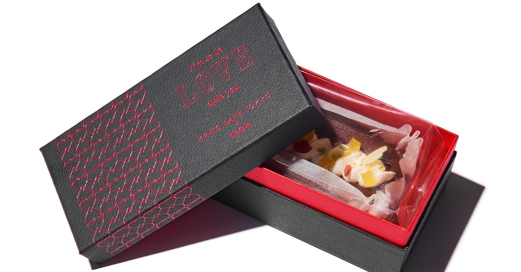 黒をベースとしたボックスには、「I'M SO IN LOVE WITH YOU(君に恋してる)」のロゴとハート模様が赤く輝くシックで大人可愛いデザインに仕上げました。箱を開ける前から楽しみ溢れる限定カラーのパッケージです。