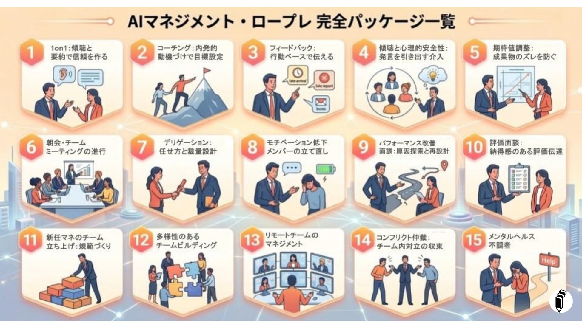 ・マネジメント向け:[例:1on1、傾聴、コーチング、評価面談、ハラスメント対応 等]
