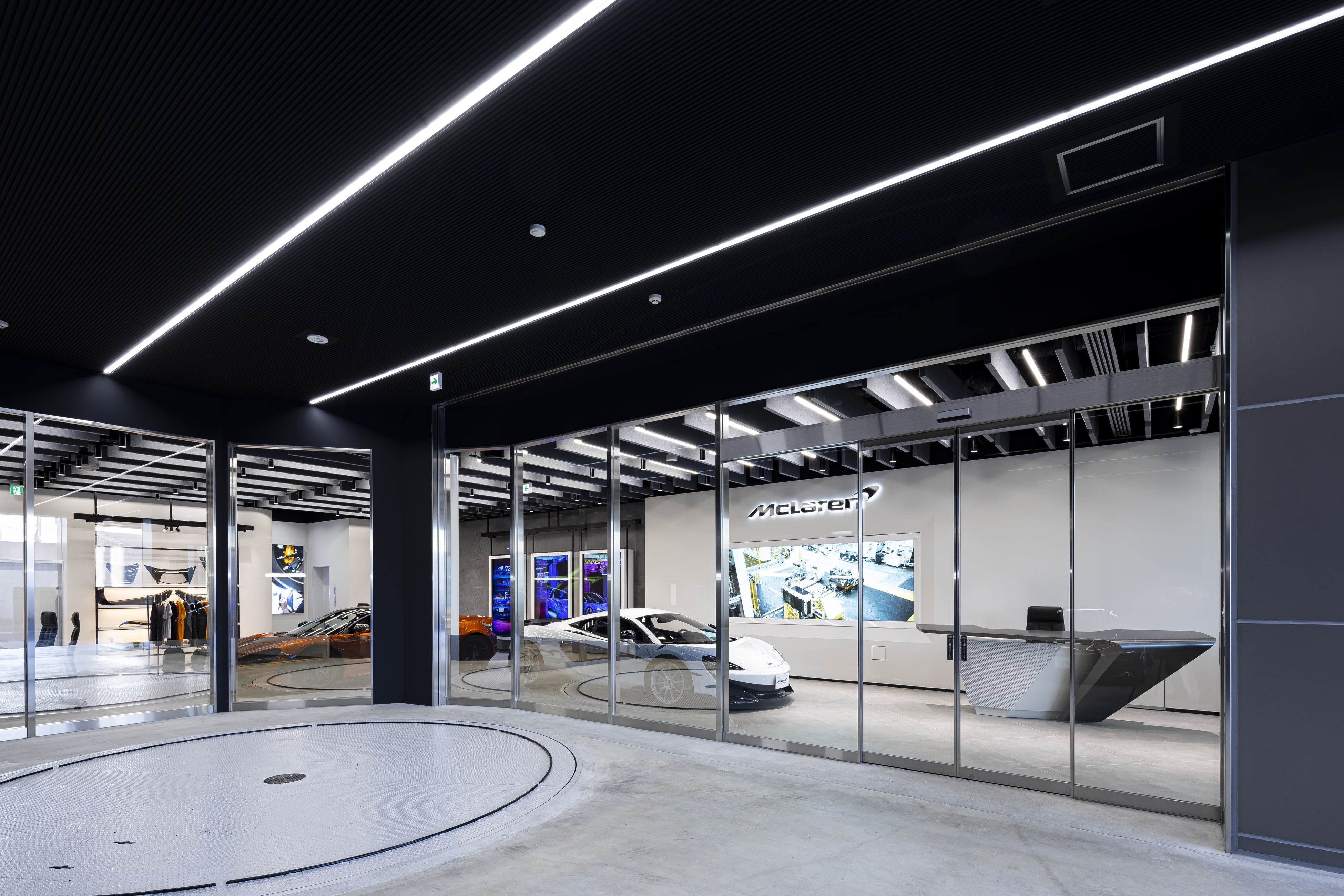 ■ ショールームおよび4階建施設の敷地内には、約 20台のマクレーレンの展示が 可能