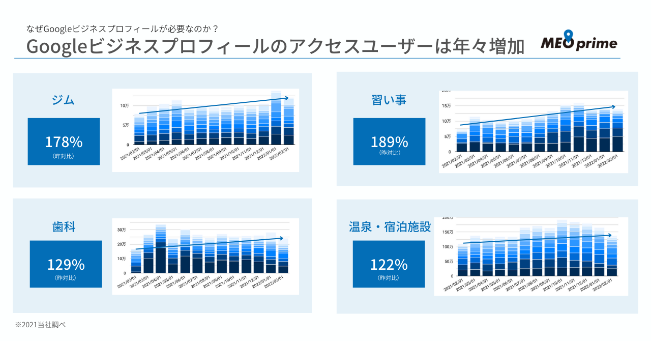 Googleマップの利用者数が増えている中、マップ内検索で店舗情報を確認できるGoogleビジネスプロフィールは、実店舗を持つさまざまな業種で需要が高まっています。