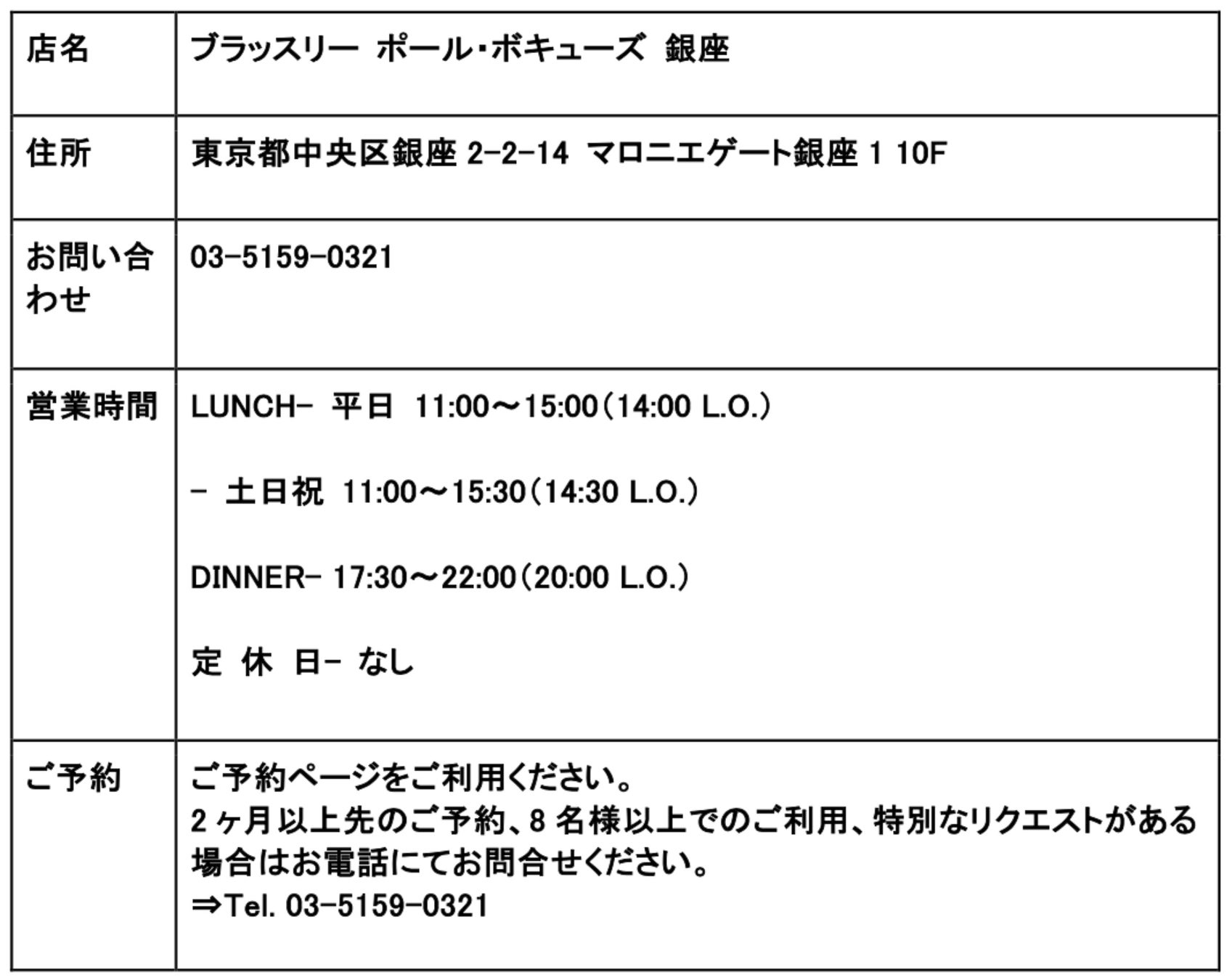 ブラッスリー ポール・ボキューズ 銀座 公式HP