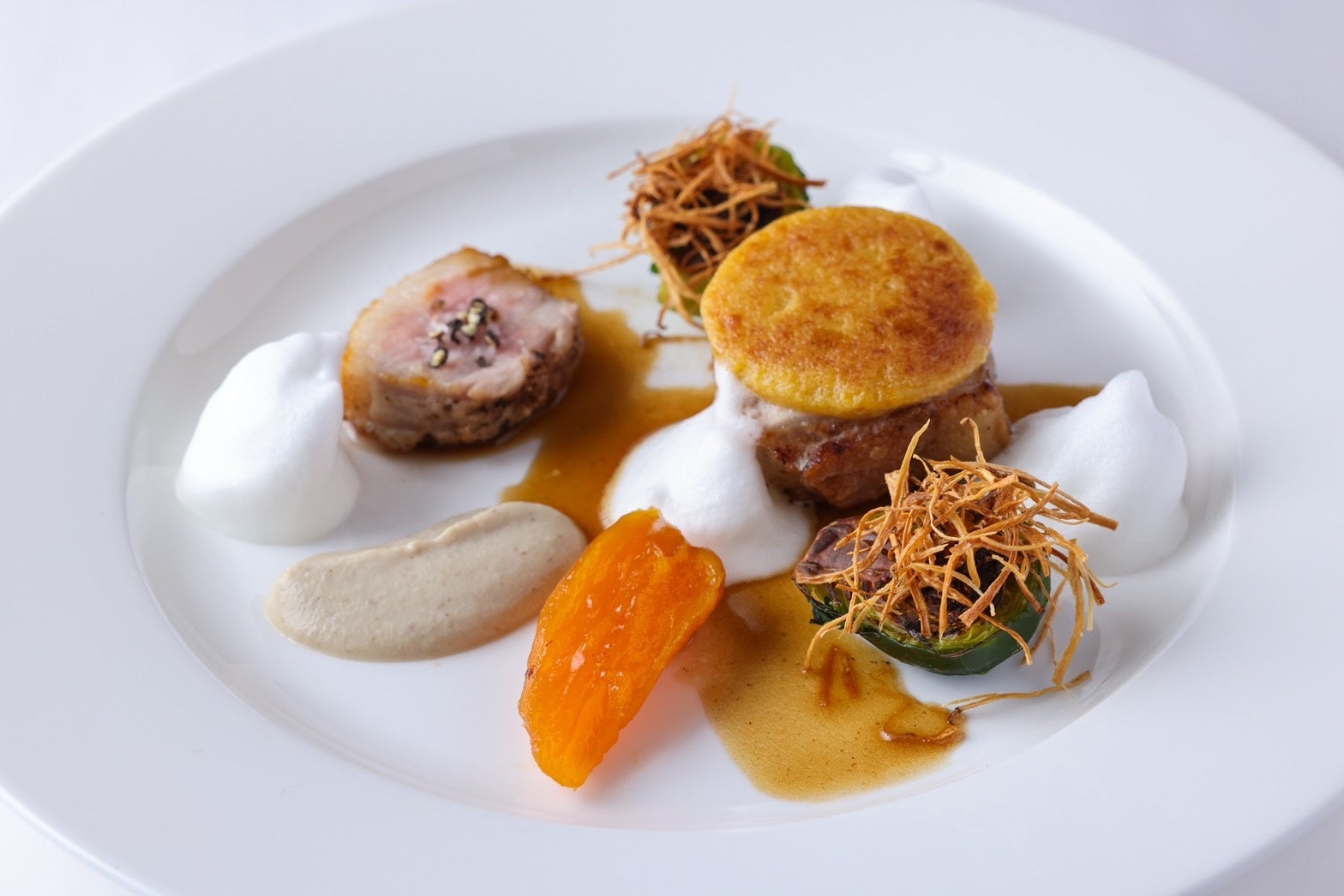 Filet de Porc Rôti, Son Jus, Kaki de Fukushima, Croûte de Fromage Blanc