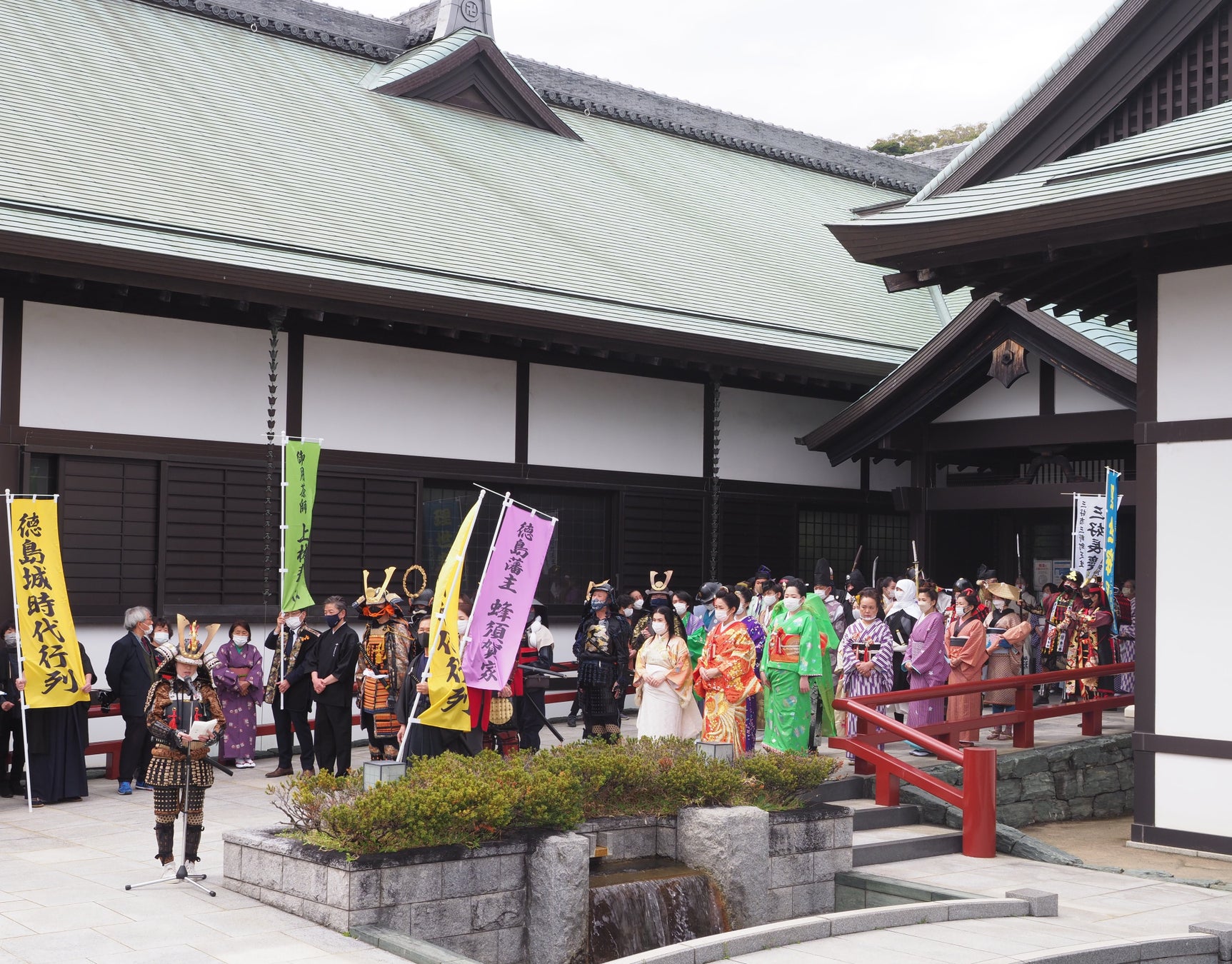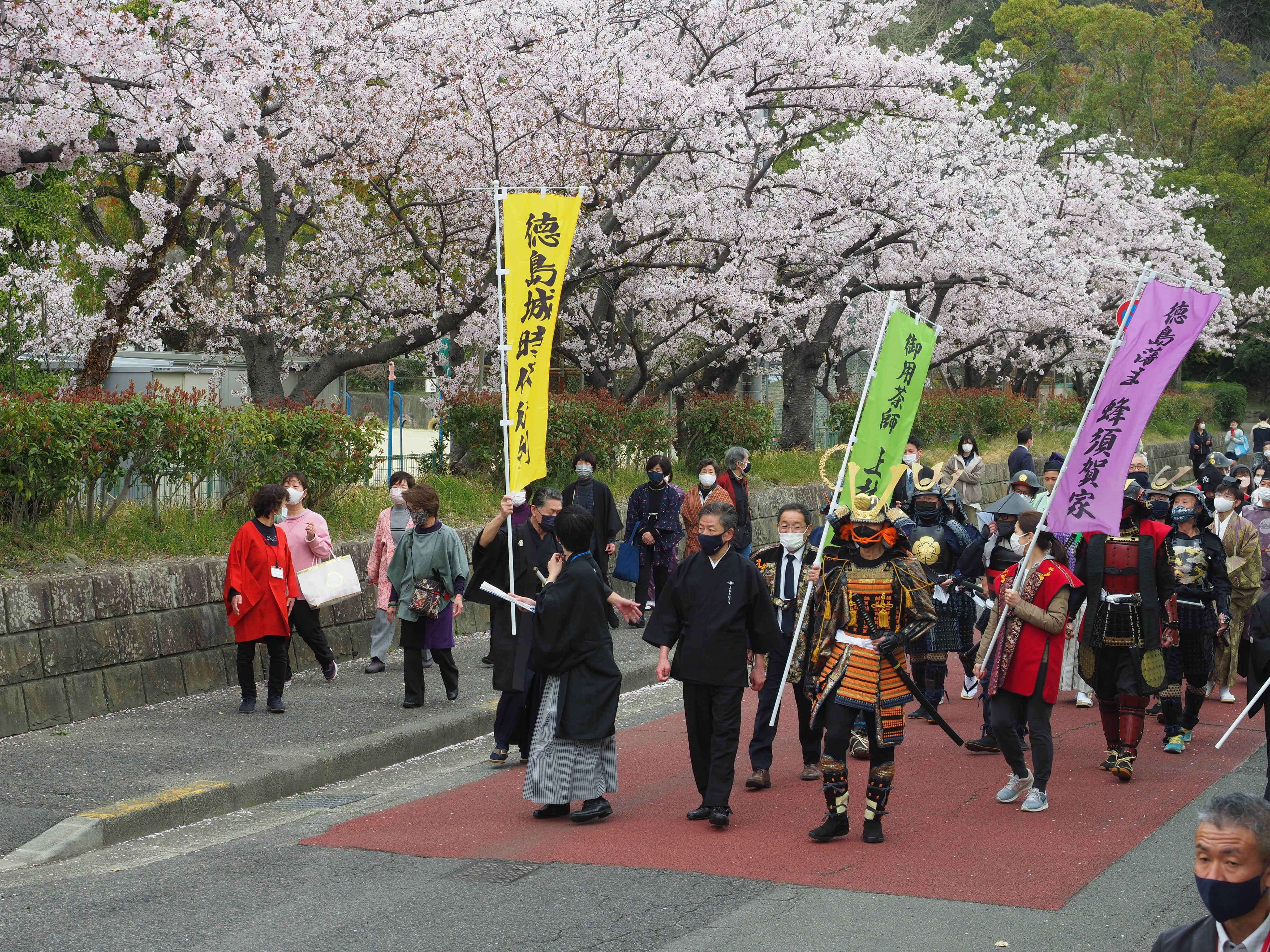 戦国時代から江戸時代の時代衣装を着用し、徳島城(徳島城博物館)から鷲の門広場まで約2キロを歩くイベント