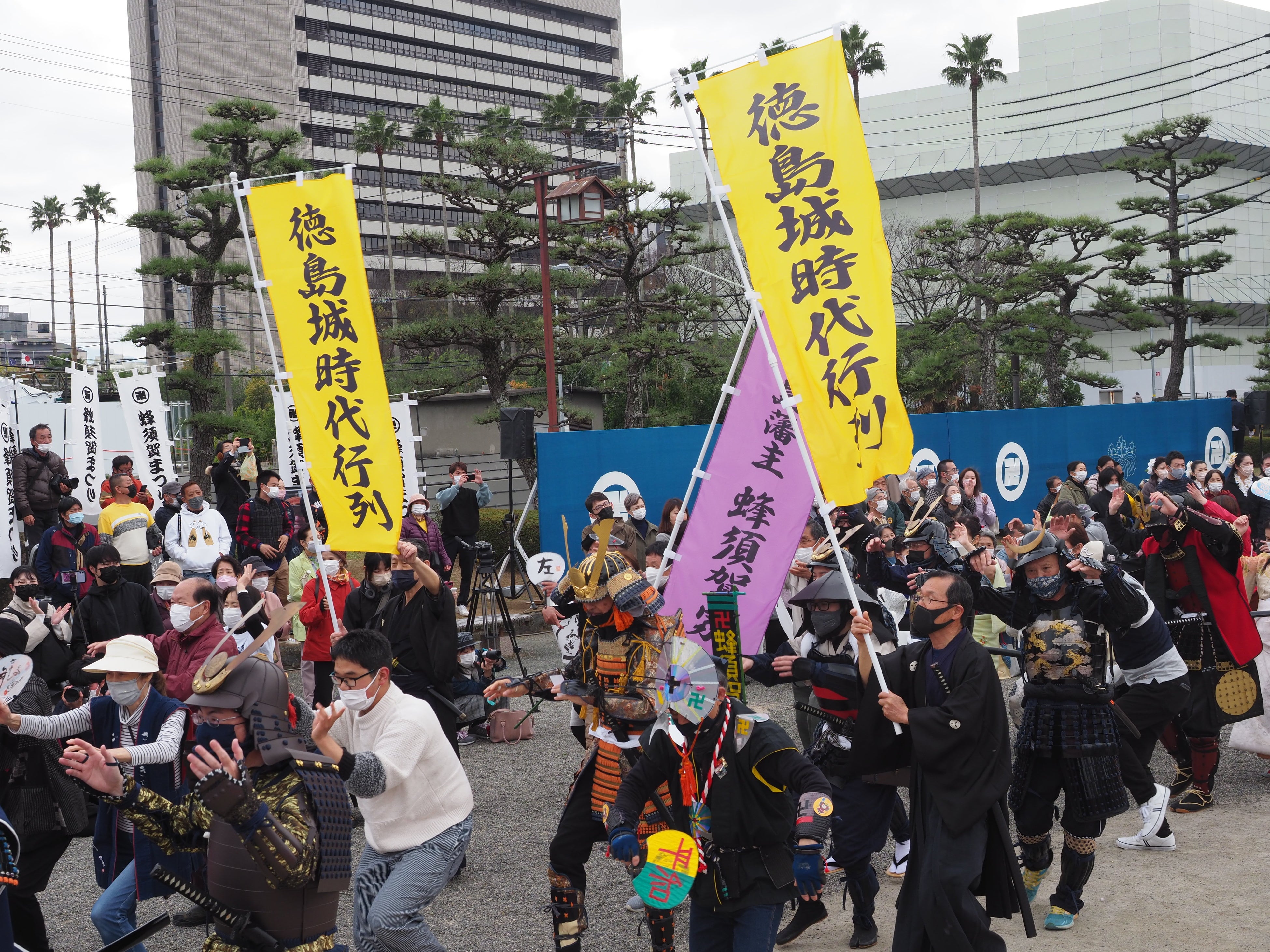 内 容 : 江戸時代の武士や町人に扮した公募市民(約30名)による時代行列。藍吹雪による出陣太鼓に送ら れて徳島城博物館を出発し、鷲の門広場まで歩き、「蜂須賀まつり」に合流します。