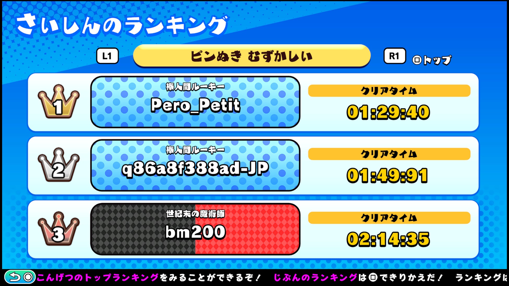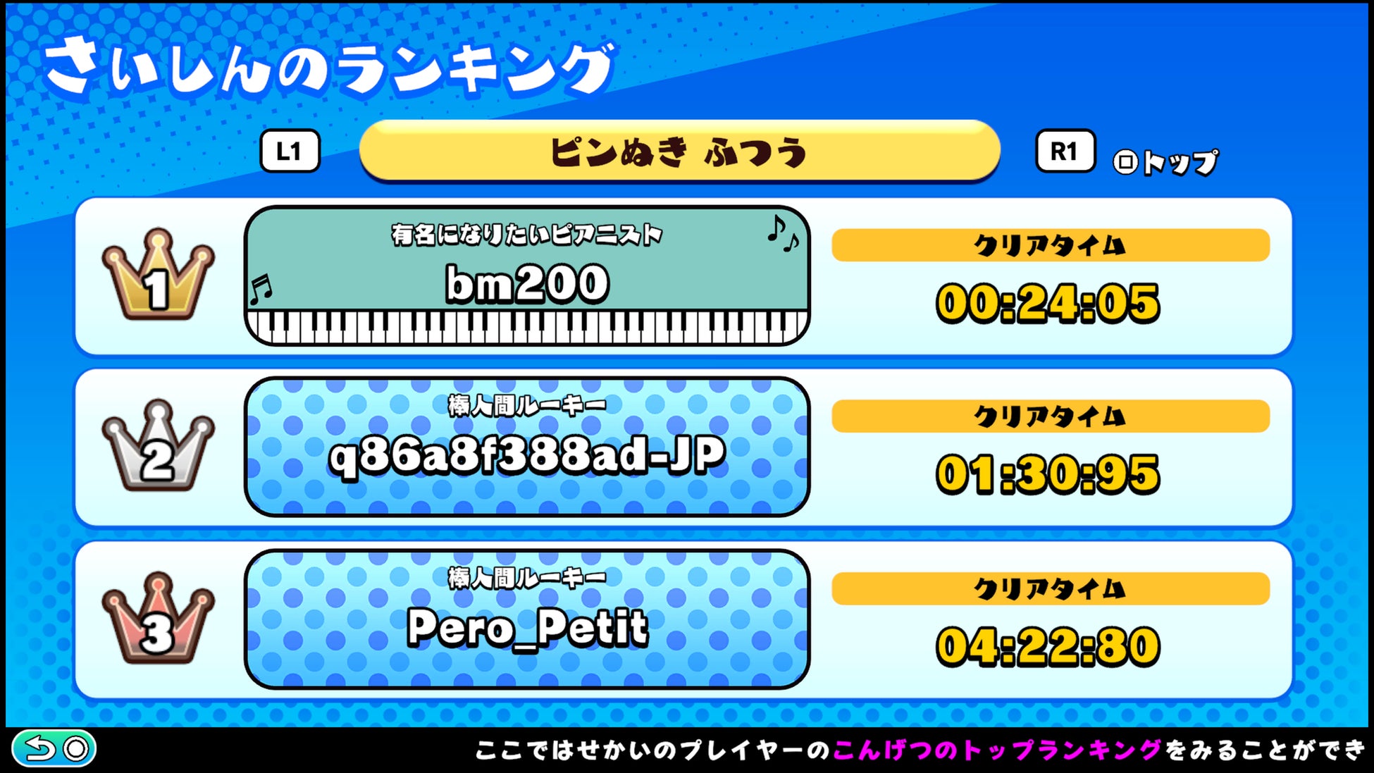 クリアタイムやスコアで世界中のプレイヤーとランキングを競うことができます。