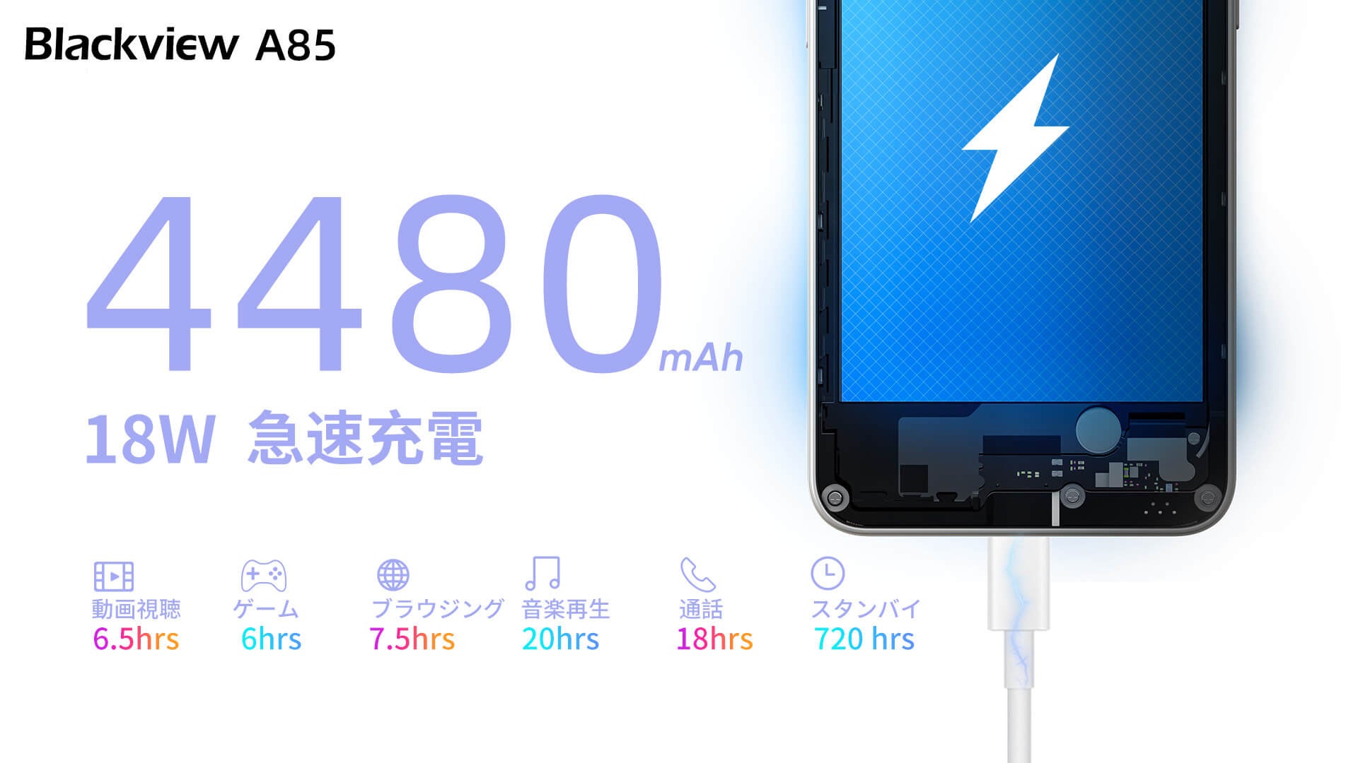 Blackview A85のバッテリー容量は4480mAhであり、ユーザーにより速く、より安全で、より効率的な充電体験を提供し、ユーザーに好印象を与えます。