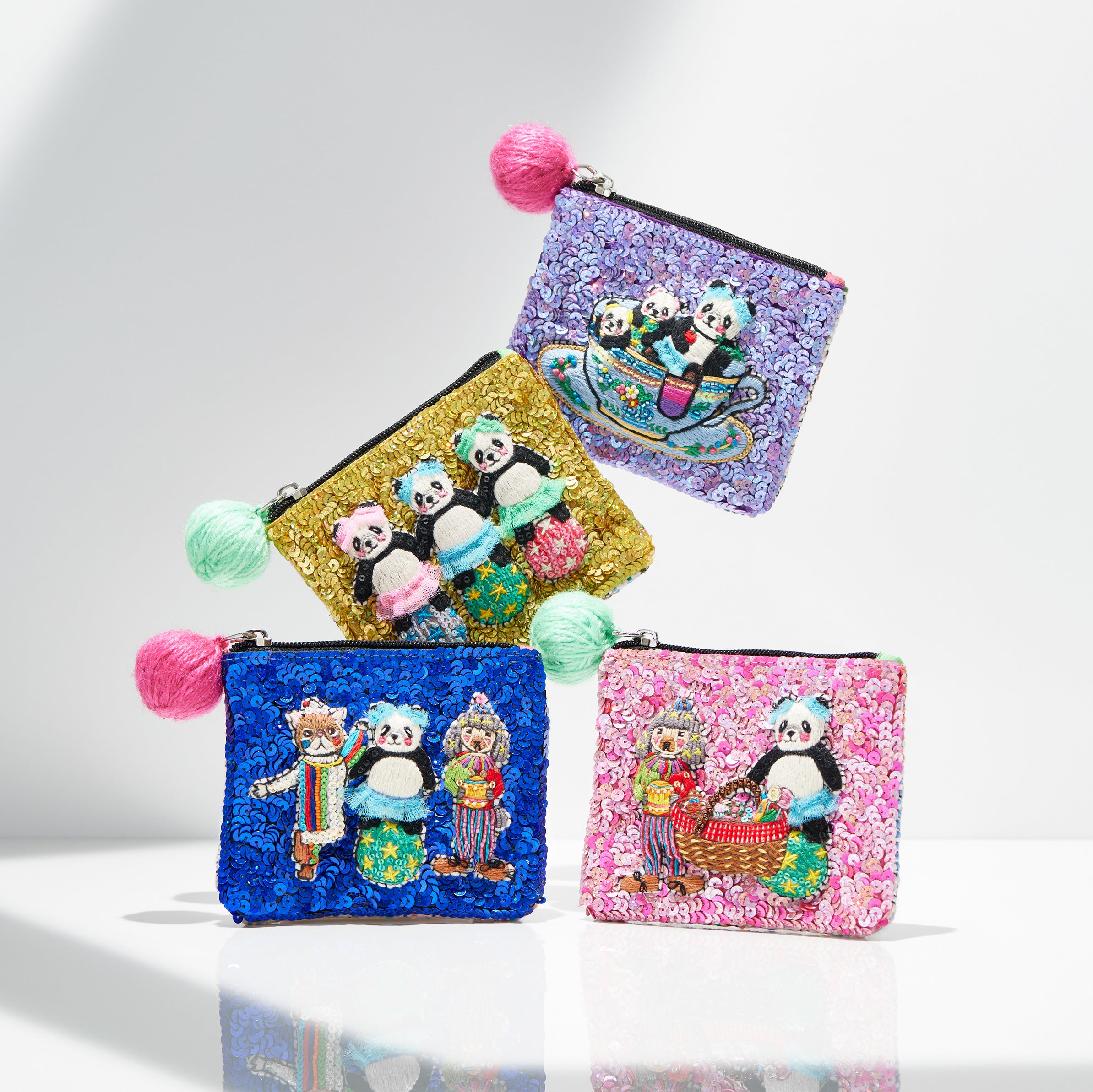 「パンダ」や「四つ葉のクローバー」「パンダの肉球」の3種類の刺繍チャームを選べるようになった刺繍バッグ缶を大丸札幌店にて先行発売