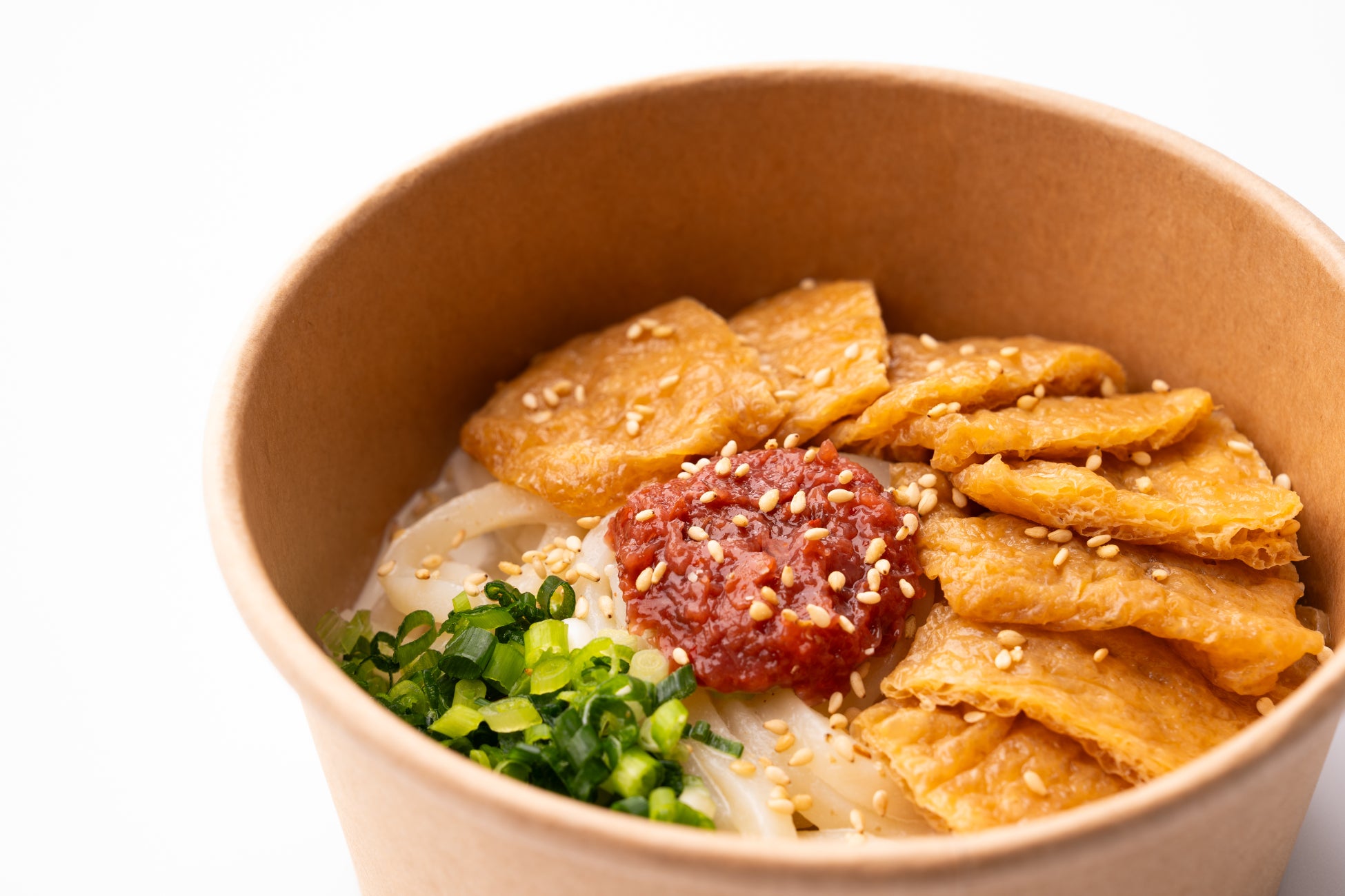 日本伝統の麺料理である「うどん」に、生クリームと梅風味の出汁をかけ、ピリ辛でまろやかな辛子梅の風味が合わさり、濃厚さとさっぱり感が絶妙にマッチした味わいです。