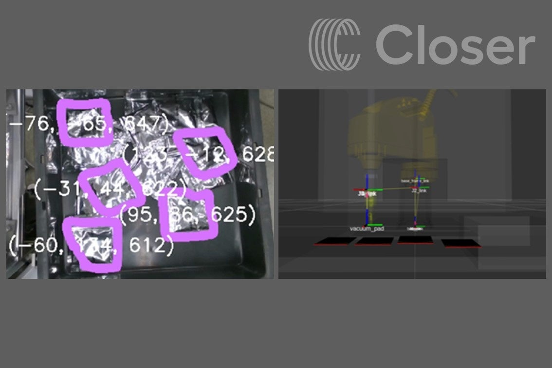 Closerでは、このような食品産業に適用できる今までにないロボットシステムの開発を行ってきました。本事業ではAI画像処理やモーションプランニングなどの研究開発を行い、「不定形状の食品のピッキングの実現に向けた汎用ロボットシステムの開発と実証実験」に取り組みます。