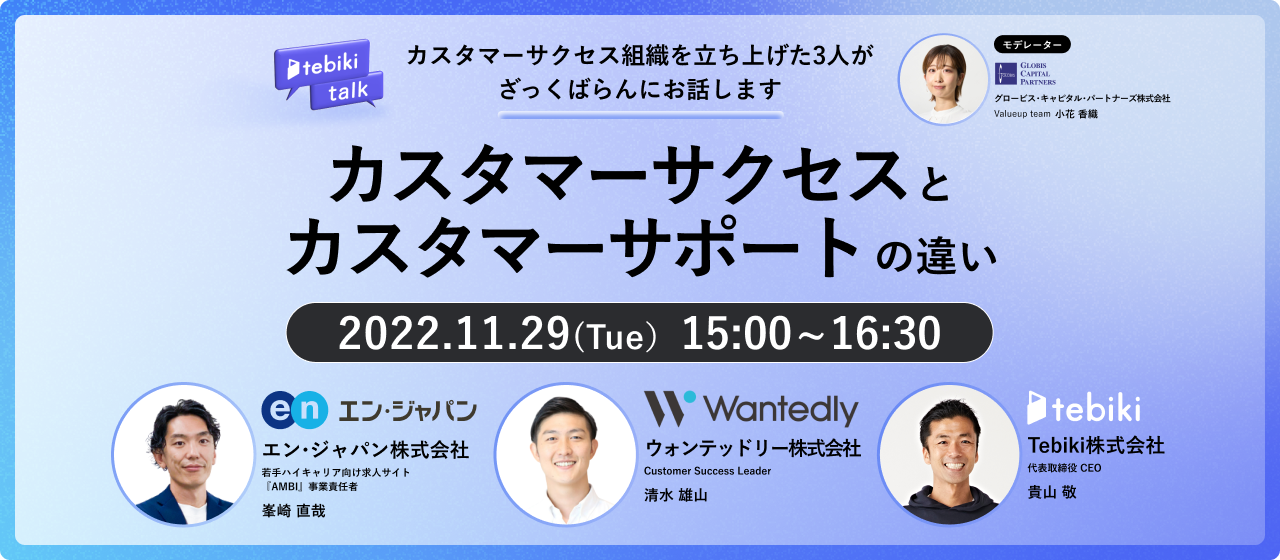 第2回のゲストとして、エン・ジャパン株式会社、ウォンテッドリー株式会社をお招きし、カスタマーサクセスとカスタマーサポートの違いについて語ります。