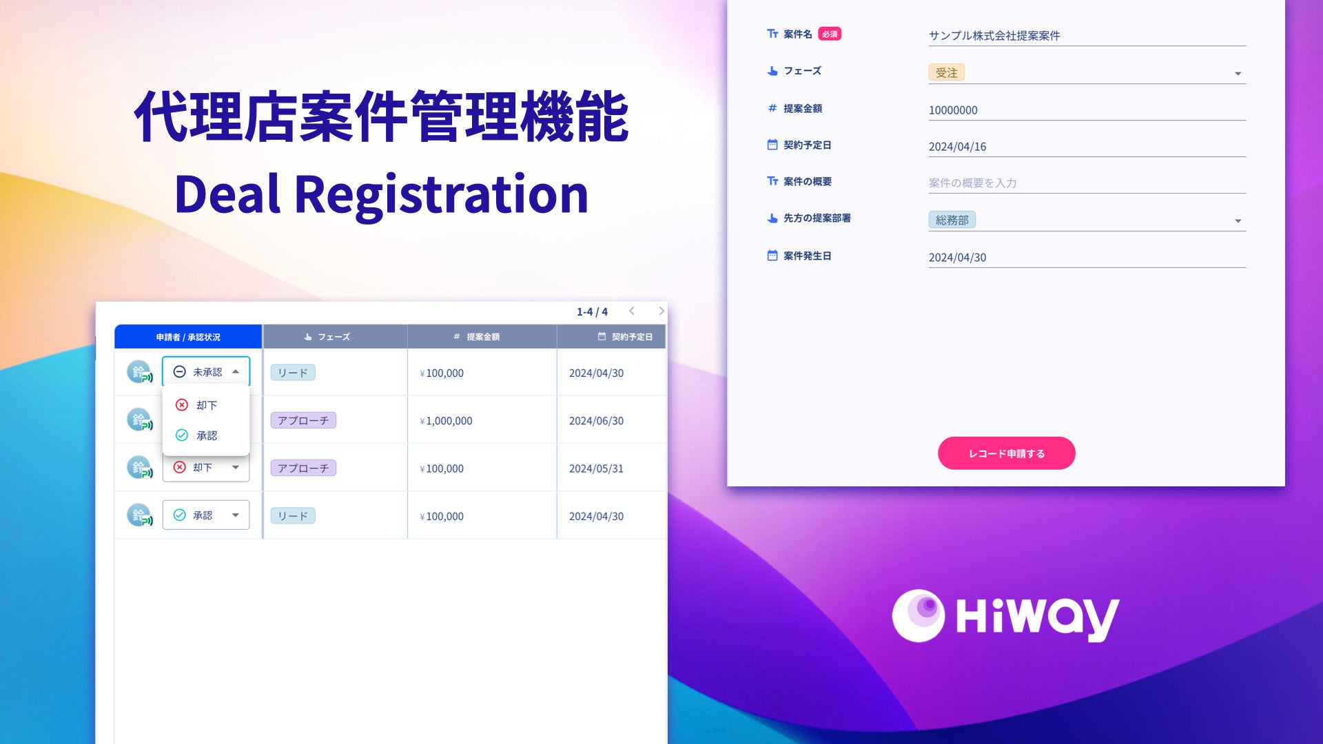 企業間営業連携クラウド「Hiway」、代理店案件管理機能をリリース
