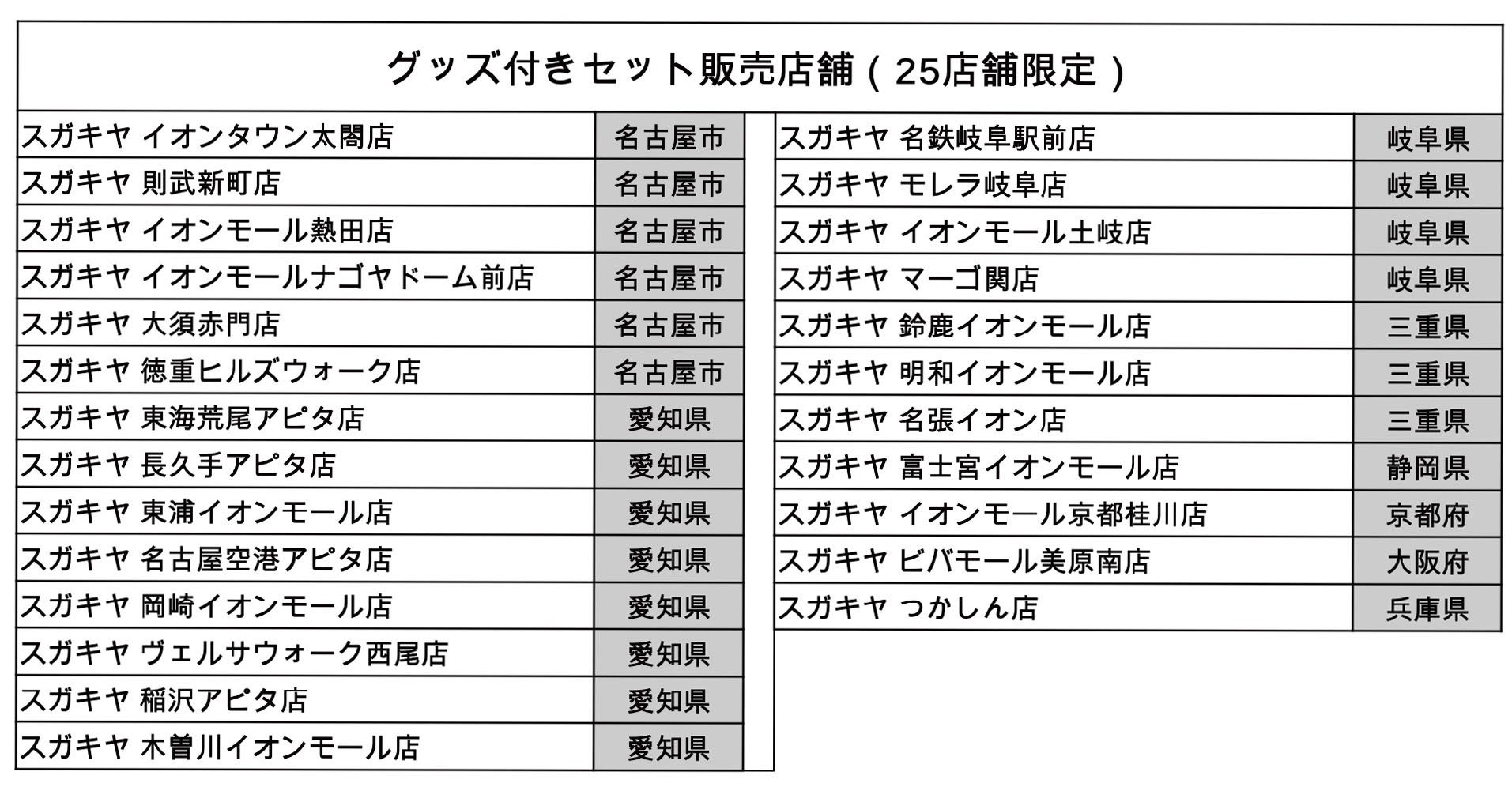 対象:スガキヤイオンタウン太閤店、スガキヤ大須赤門店