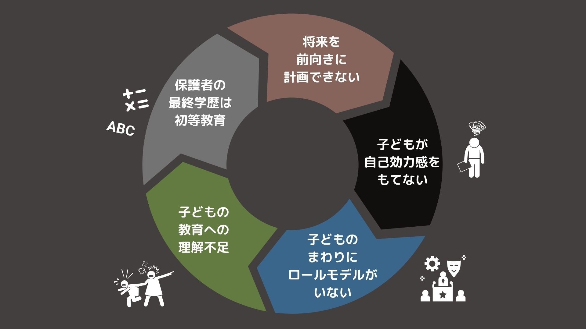 自身も貧困家庭に生まれ、小学校を中退しているため子どもの進学をどうサポートして良いか分からなかったり、子どもと良い関係性を築くためのコミュニケーションに悩んだりする保護者たちがいます。日々の生活で精いっぱいなのです。