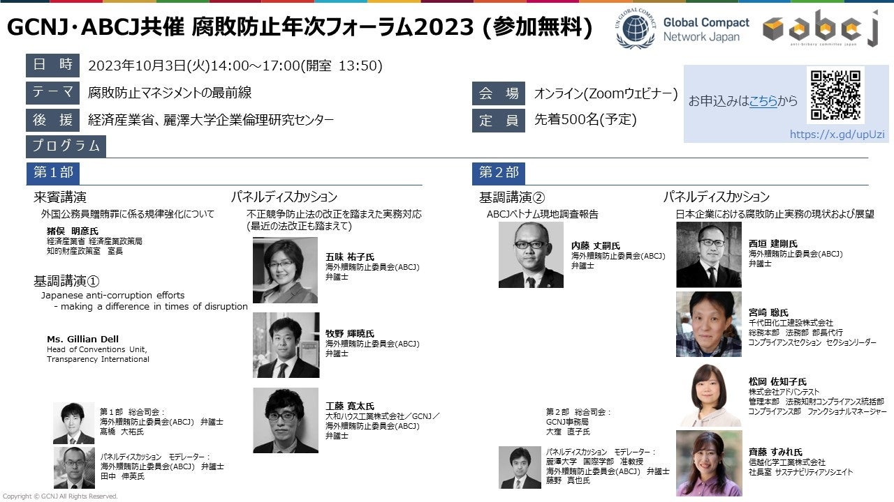 ・共催:海外贈賄防止委員会(ABCJ: Anti-Bribery Committee Japan)