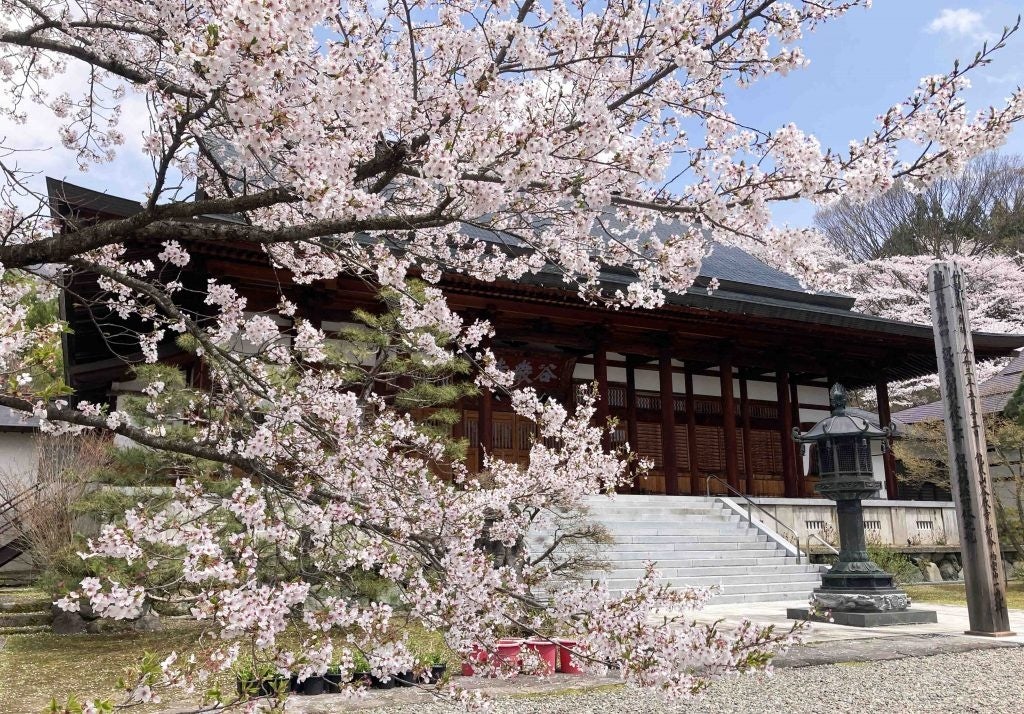 ぜひ訪れてほしいのが桜の名所「谷厳寺(こくごんじ)」。飯山市側、中野市側どちらから登っても丘の最上部に位置するこのスポット、自転車で訪れればその達成感も相まって更に美しく感じられることでしょう。