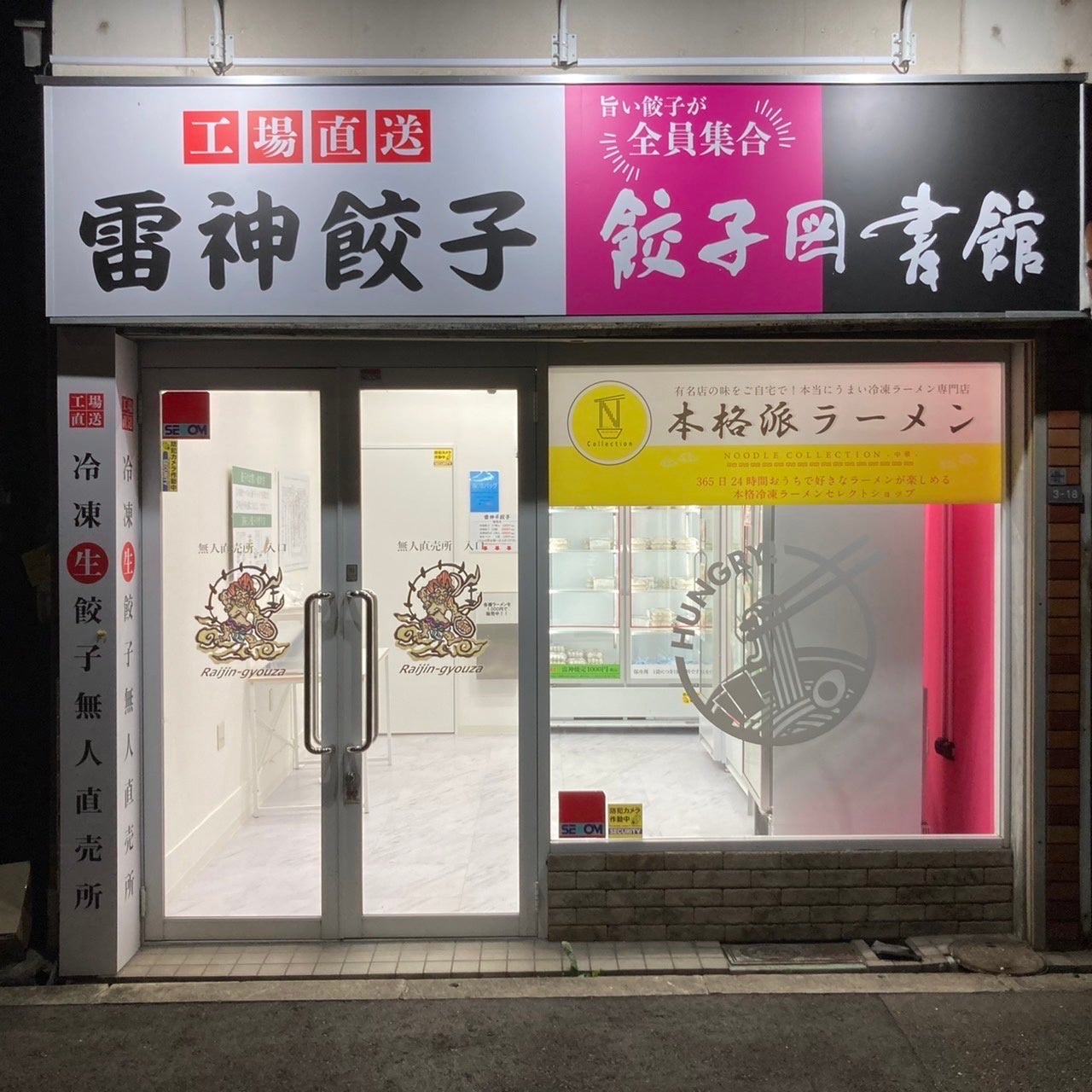そんな中、餃子図書館とコラボさせていただくことで全国にある有名店のプレミアム餃子を販売する事が叶いました。全国に数ある餃子無人販売店の中で餃子図書館とのコラボ店舗を展開し、有名店のプレミアム餃子と雷神餃子を販売しているのは「雷神餃子無人販売店」のみです。