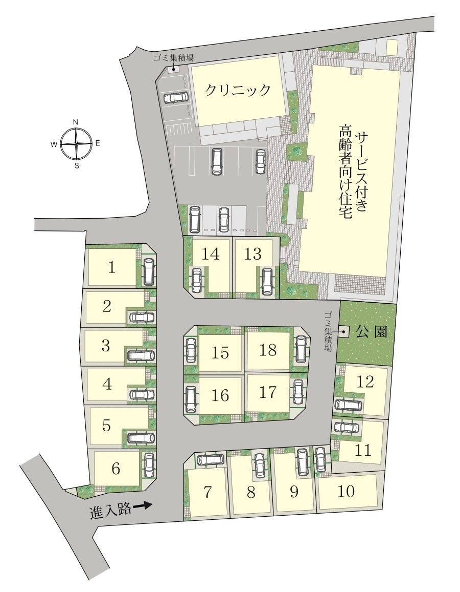 「こもれび」は親会社の敷島住宅の分譲地「敷島ステラ 寝屋川・黒原城内町」内に立地している。同社は「暮らしの居場所づくり」を企業理念に掲げ、街づくり・新築住宅・賃貸住宅・介護・福祉施設など、様々な年代の暮らしに関わる事業を展開している。「敷島ステラ 寝屋川・黒原城内町」は住宅地・老健施設・医院・薬局・公園を一体開発することで、各世代間の暮らしが重なり合う地域交流の場を創り出している。加えて近隣大学の各研究室や社会福祉協議会、自治会と連携し、孤立や貧困の課題解決、災害時の共助体制の構築をめざしている。