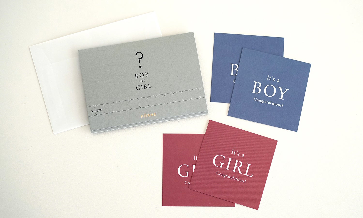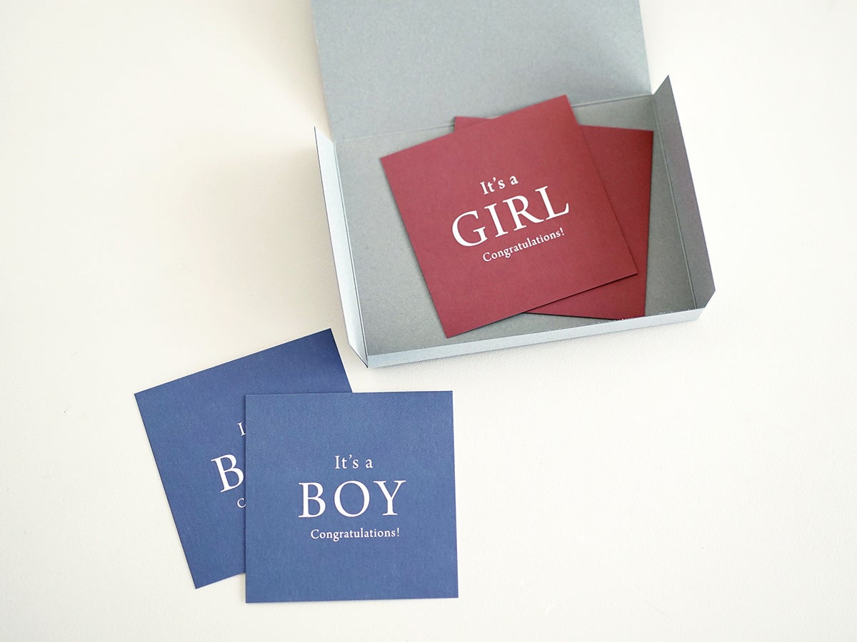 内容:組み立て式カードケース1枚、性別カード4枚(BOY、GIRL各2枚)、封筒1枚 ※日本製