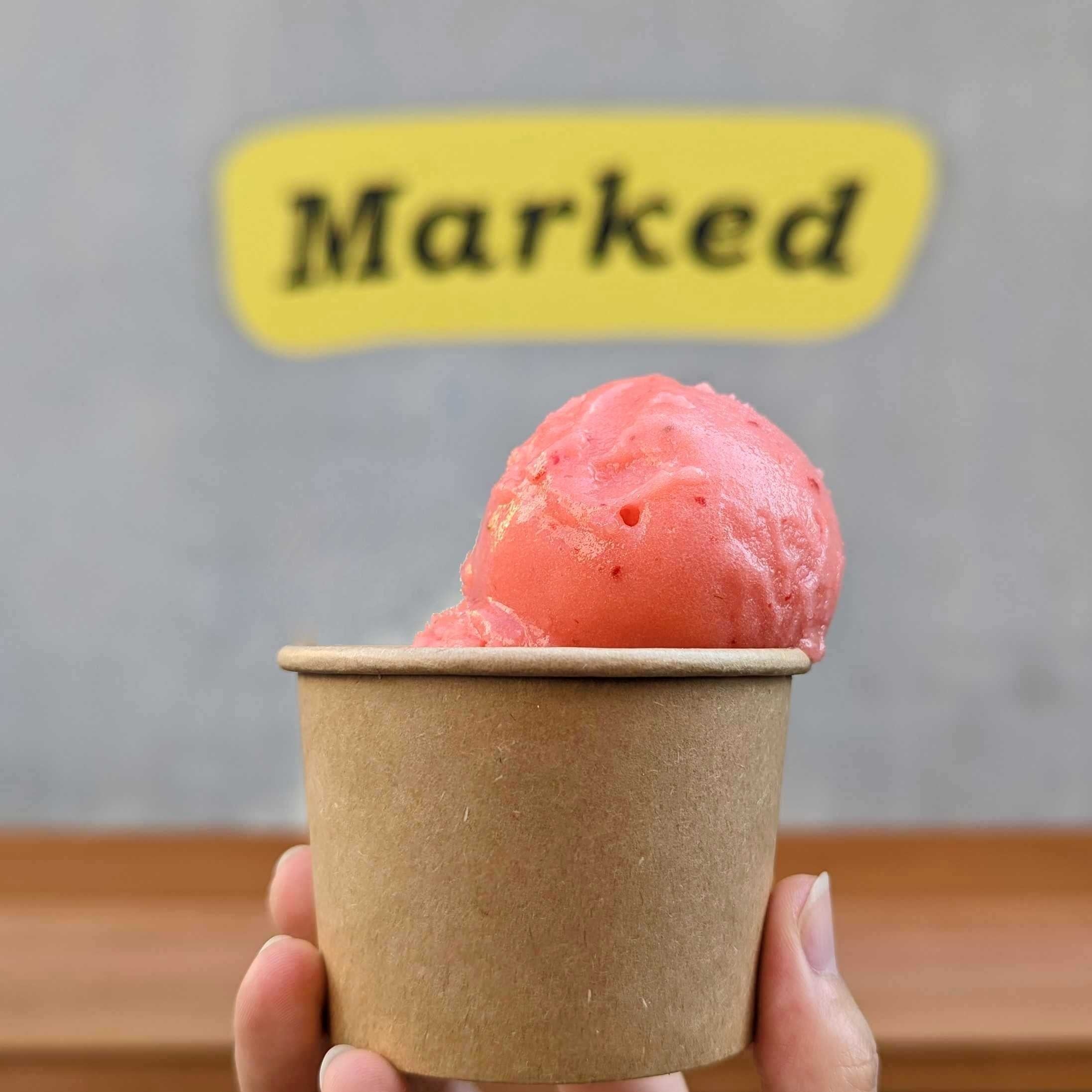 Markedのアイスクリームは着色料や安定剤を使用していないナチュラルなアイスクリームです。現在は美岳小屋さんの自然栽培「きぼうのいちご」を使用したシーズナルアイス他、全6種類のアイスクリームがテイクアウトでお召し上がりいただけます。こだわりの食材を使ったクラフトアイスクリームをぜひご賞味ください。