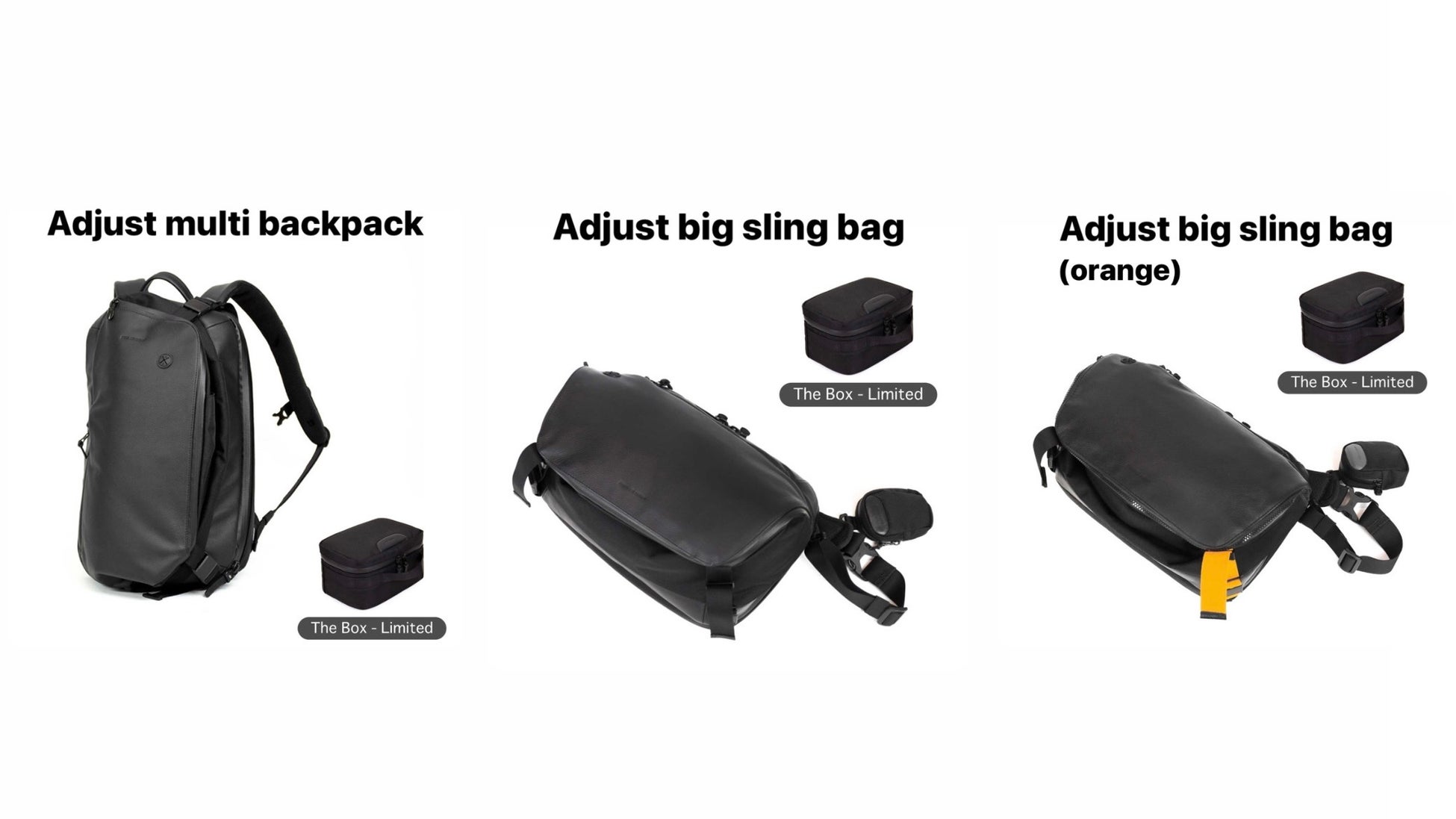 また、前回のクラウドファンディング出品のAdust big sling bagとカメラケース(The Box-limited)の数量限定セット販売も決定いたしました。