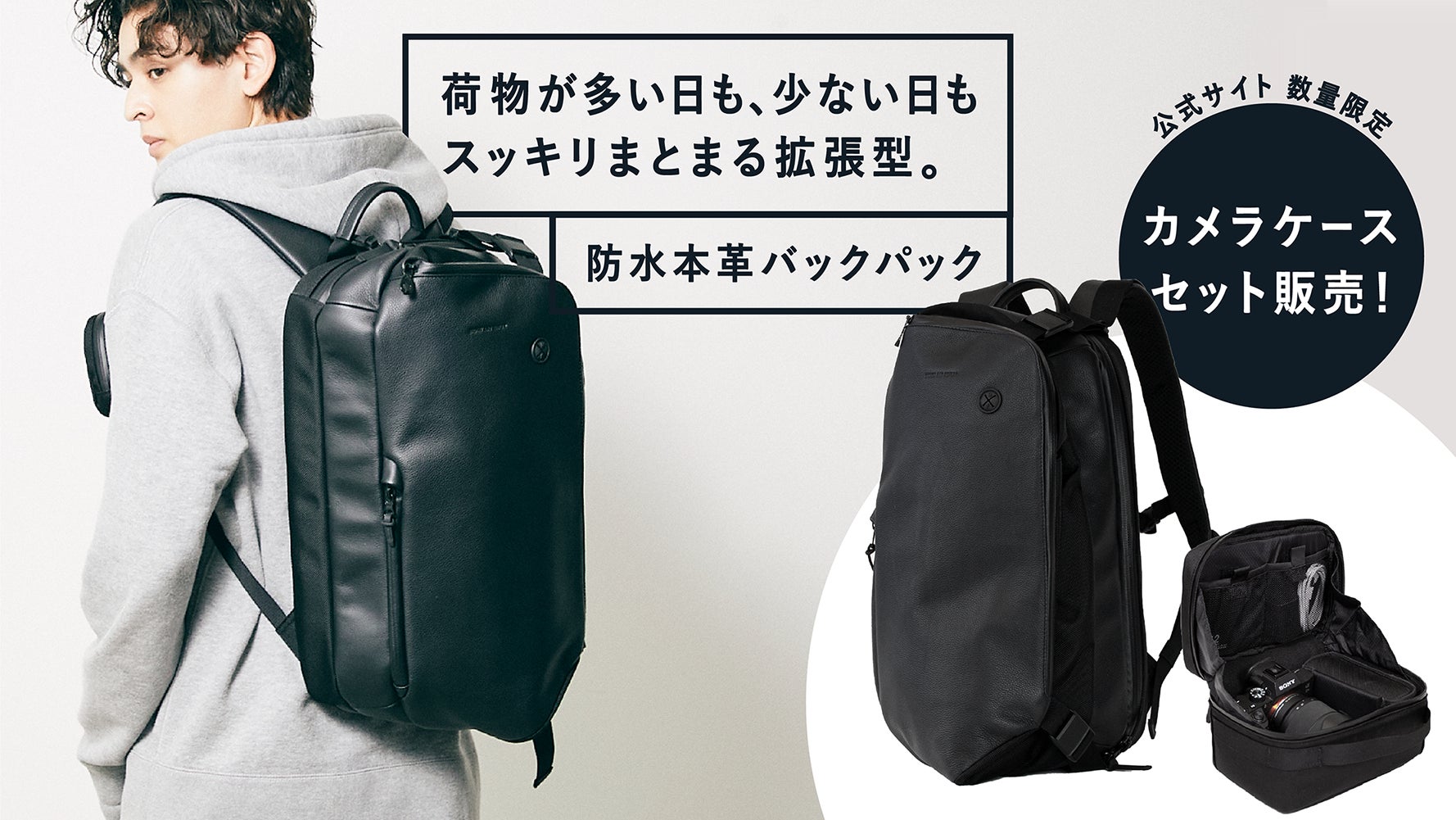 牛革なのに高い防水性。拡張型バックパックが一般販売開始!公式サイト数量限定でお得なカメラケースとのセット販売も!
