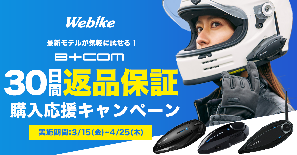 「Webike限定B+COM返品保証キャンペーン」3月15日~4月25日のご購入者 30日間返品保証キャンペーン
