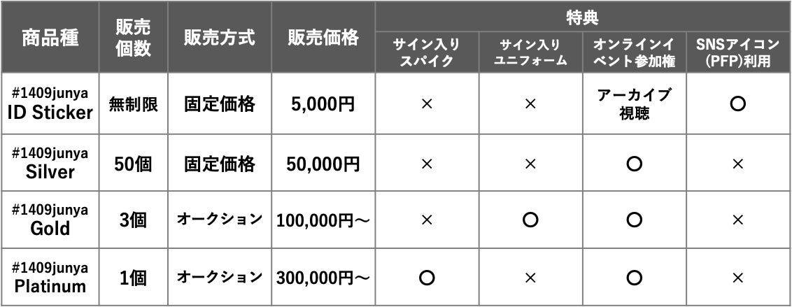 #1409junyaプロジェクトのNFTランク/特典一覧