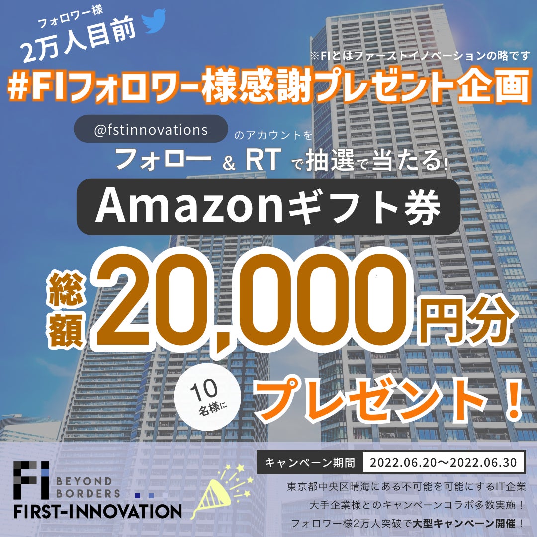 株式会社ファーストイノベーション(本社:東京都中央区、以下ファーストイノベーション)は、Twitter2万人目前 #FIフォロワー様感謝プレゼント企画 を開催中です。