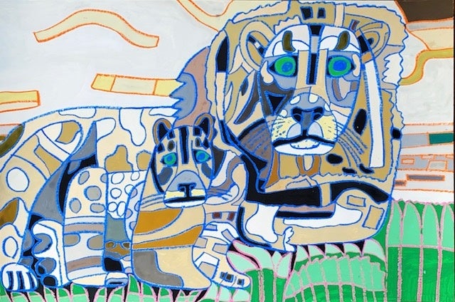 彼の創作スタイルは、直感的で鮮烈な色彩表現が特徴。下書きを一切せず一気にクレパスを走らせ、12色の水彩絵の具で心のままに色を重ねていきます。