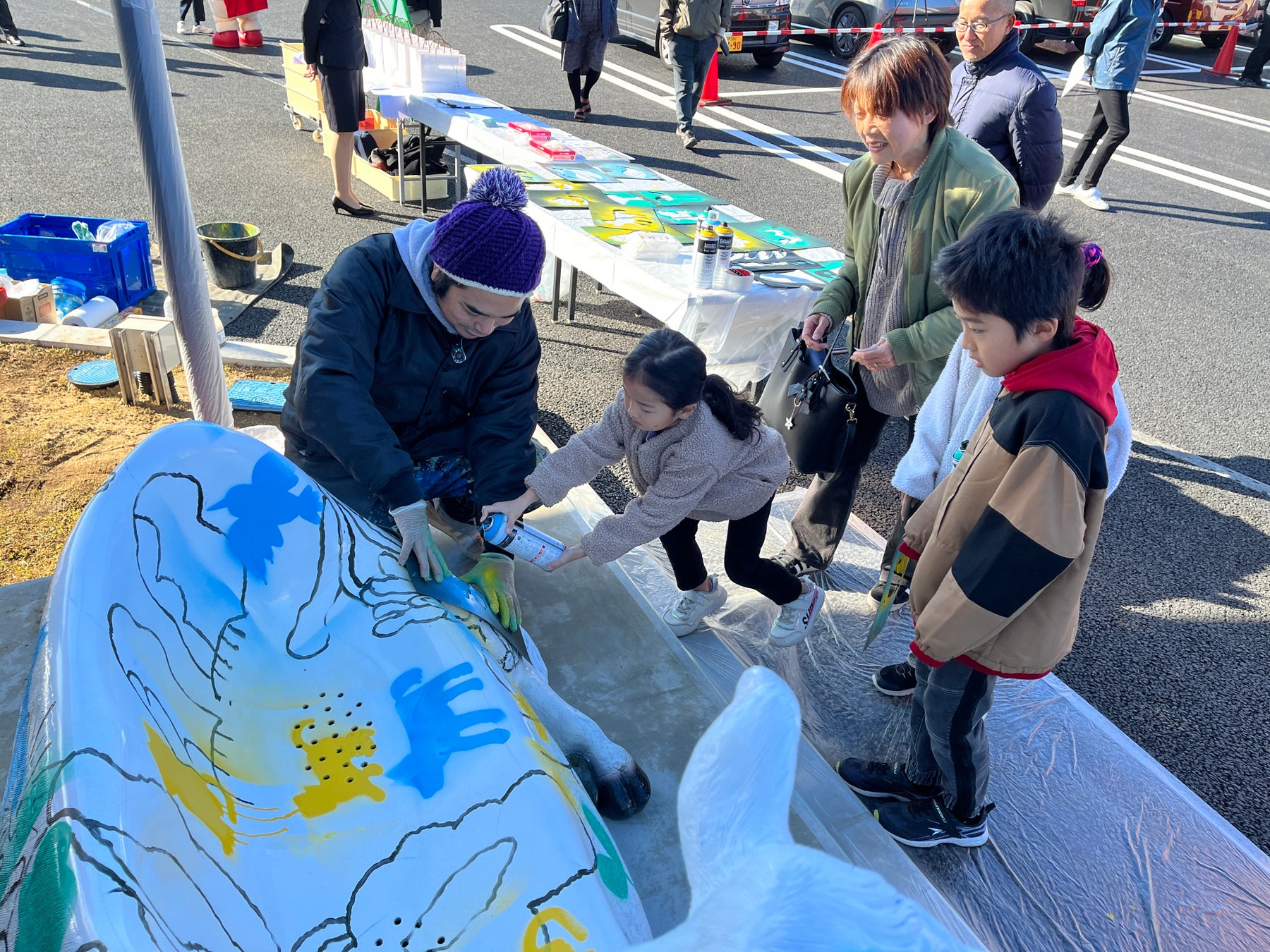 2023年12月2日に開かれた、かわち夢楽(むら)のグランドオープンイベント当日のワークショップには、約50組の地元親子が参加して、作品のベースを共創しました。