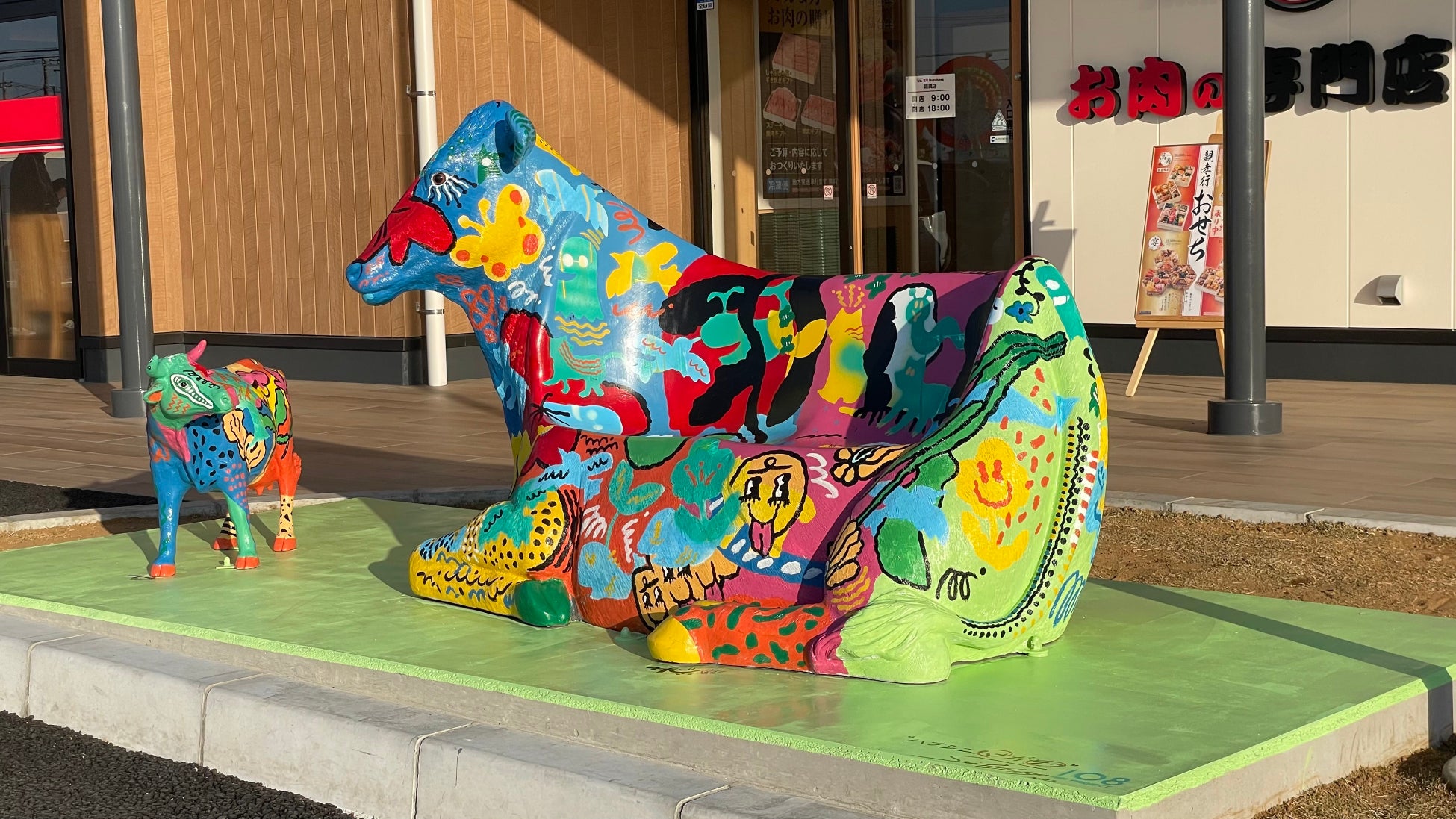 第13弾目となる本プロジェクトは、かわち夢楽(むら)の観光情報発信交流施設の運営を手掛ける株式会社坂東太郎(茨城県古河市)とのコラボレーションで、同社の企業理念「親孝行・人間大好き」と、「人口8,000人のまちに、地域外の多くの方が訪れ、ハッピーな体験をしてもらいたい」という思いをSUI THE TOKYOさんがアートにしました。