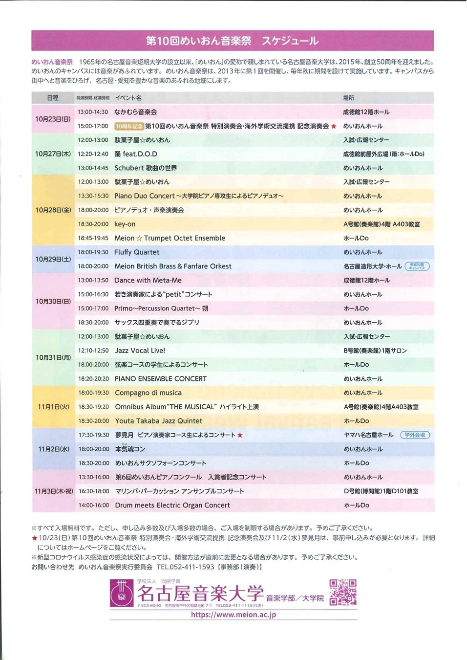 【名古屋音楽大学】今年で10回目の開催!「めいおん音楽祭」10月23日より開催。