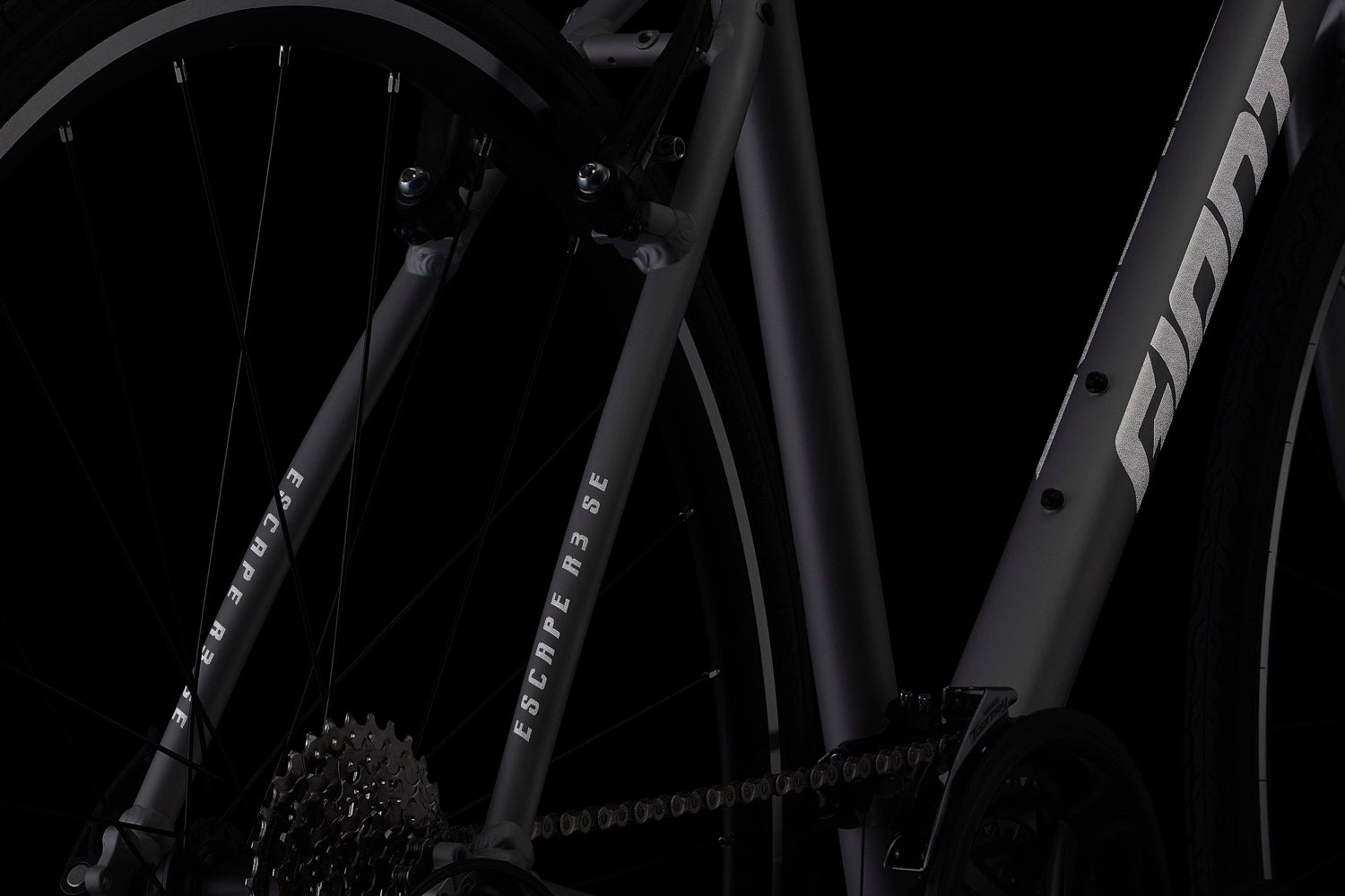 「ESCAPE R3 SE」は、日本を代表するベストセラークロスバイク「ESCAPE R3」をベースにしたスペシャルエディション(SE)です。ペイントには、GIANTの高度なアルミ製造技術「ALUXXテクノロジー」を象徴するアルミ素材の色を塗装で再現したマットシルバーに、反射効果を持つリフレクティブデカールを組み合わせたスペシャルカラーを採用しています。