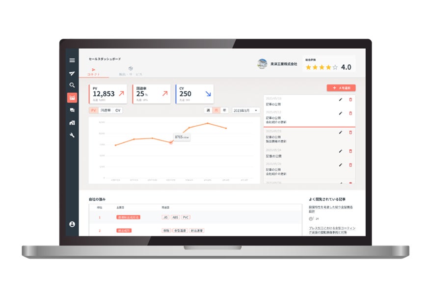 株式会社LIGHTzは、製造業の経営課題に直接アプローチできる「ものづくりコネクト」を発表しました。「ものづくりコネクト」は、中小製造業が必要としている社外への情報発信を強力にサポートします。そこで着目したのは社内の情報管理とHR管理。いままでのマーケティングツールにはない、社内の情報をまるっと管理、さらにHR機能で社員の活人を行えます。株式会社LIGHTz独自のAI技術やMicrosoftのクラウド技術をフル活用することで、企業の強み発見から情報発信までを低コストかつ低負荷で実現します。「ものづくりコネクト」は、社内DXとマーケティングDXを両立でき、12,500円/月〜(5ユーザー分)でご利用頂けます。