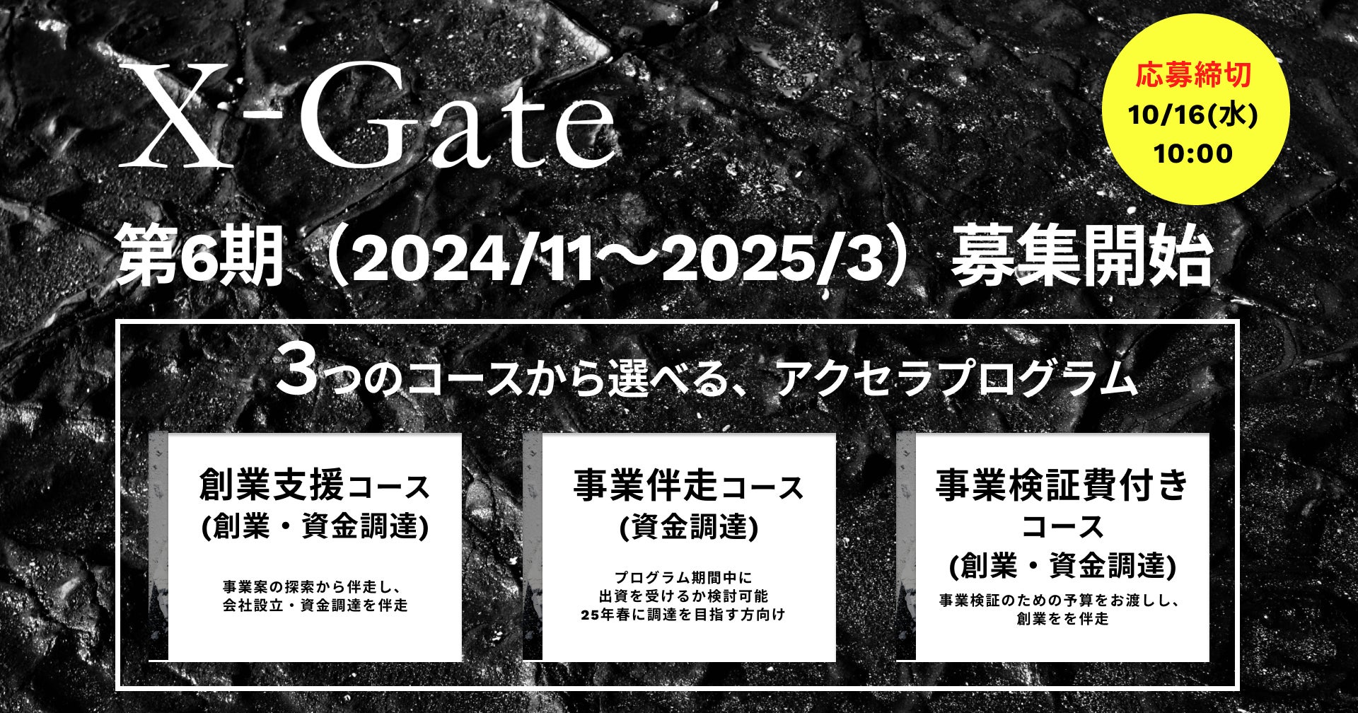 XTech Ventures株式会社(クロステックベンチャーズ株式会社、東京都中央区、代表パートナー手嶋浩己、西條晋一、以下、XTech Ventures)は、VC同居型のシェアオフィス型インキュベーション施設『xBridge - Yaesu(クロスブリッジ八重洲)』で行う、事業成長を支援するプログラム『X-Gate(クロスゲート)』第6期生の募集を開始いたします。