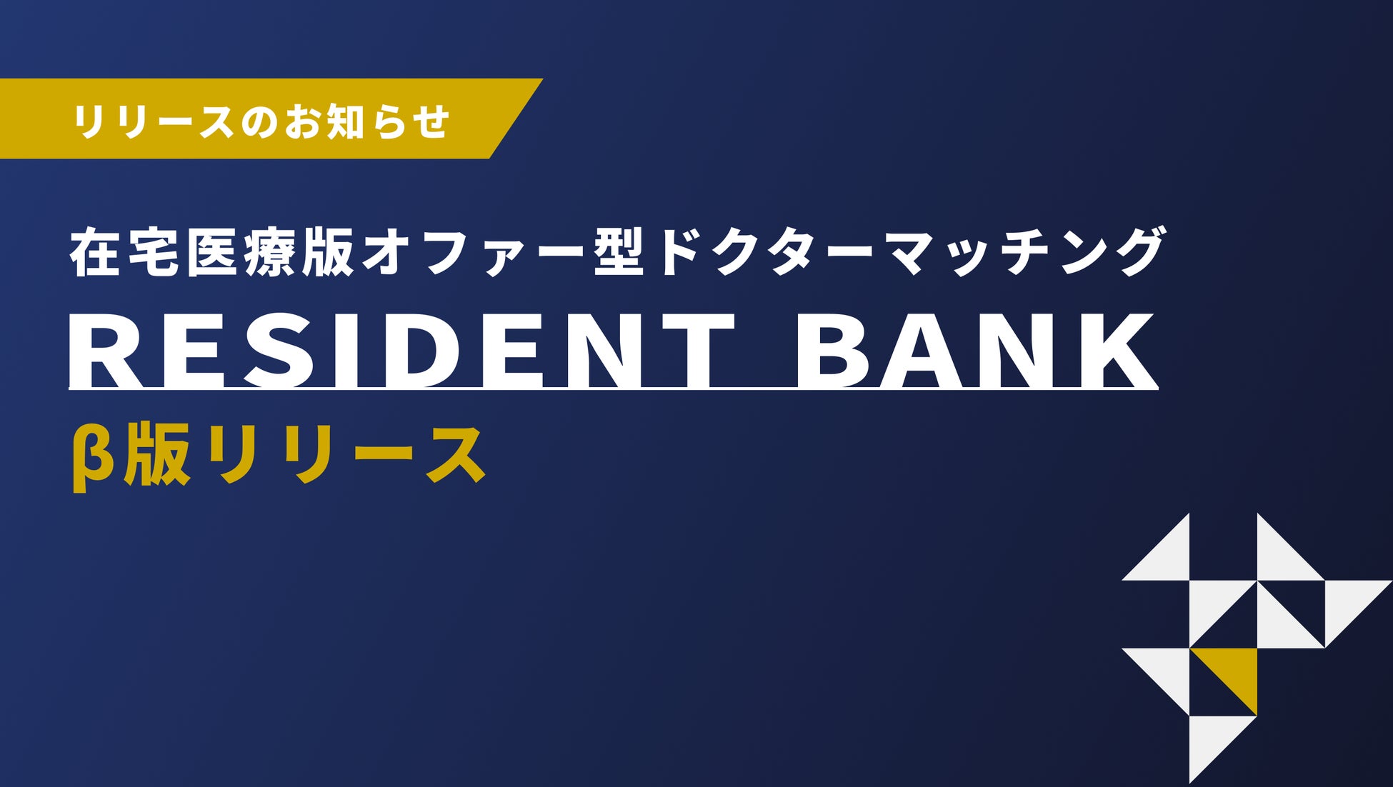在宅医療版オファー型ドクターマッチング『RESIDENT BANK』β版をリリース。試運用を開始し、正式リリースに向けて本格的な開発に着手したことを発表。