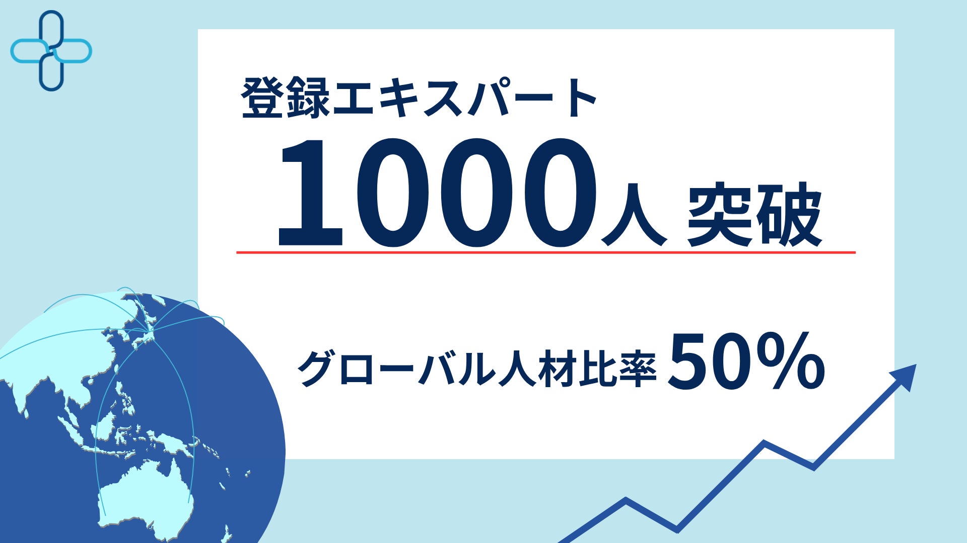 医薬品・医療機器の開発支援に特化した株式会社xCARE(クロスケア)は、同社が運営する医療専門人材プラットフォームにおいて、登録エキスパート数が1000名を超えたことを発表します。支援プロジェクト実績も300件を突破し、国内外・アカデミアから大手企業に至るまで、医療開発の多様な現場で活用が広がっています。