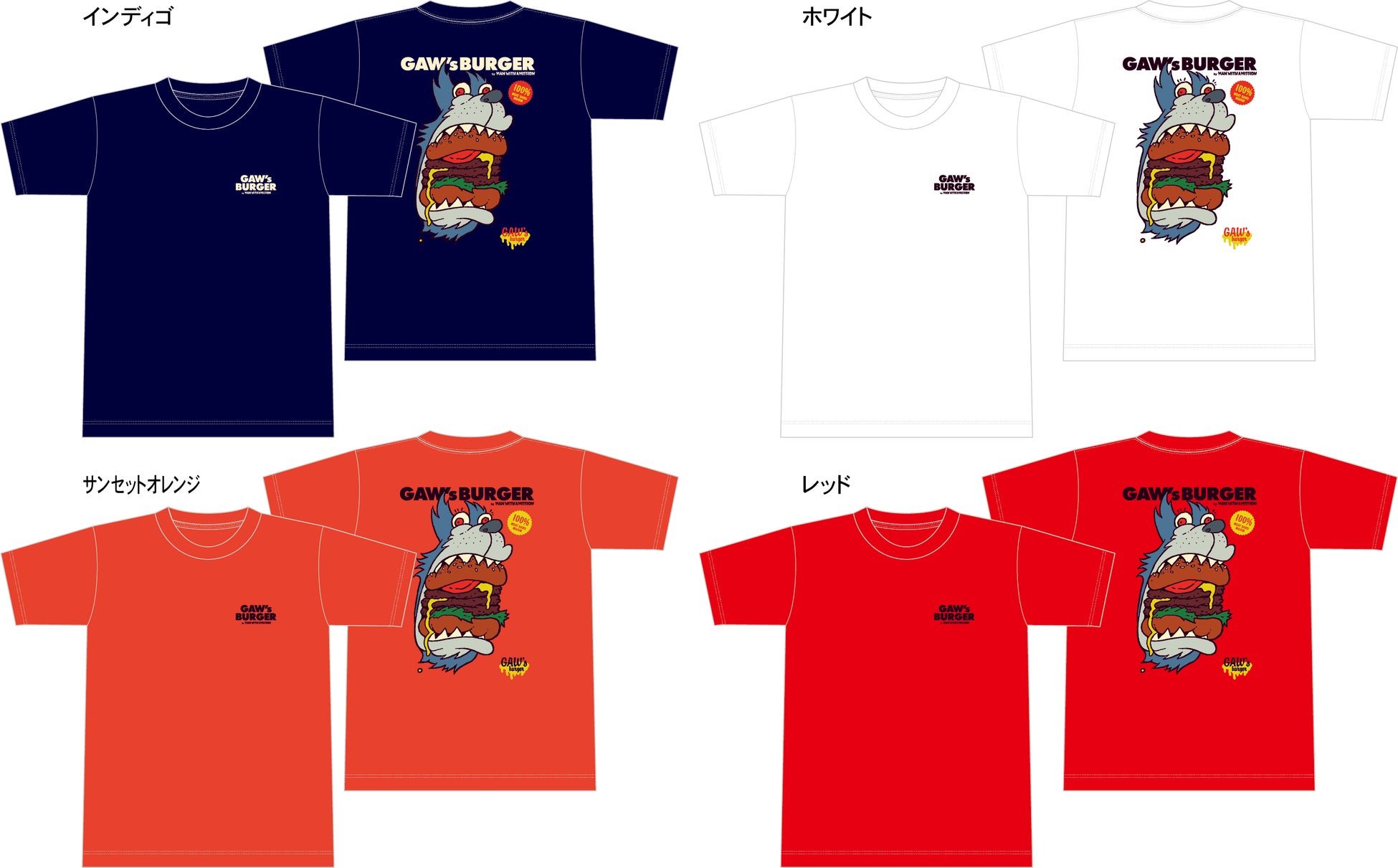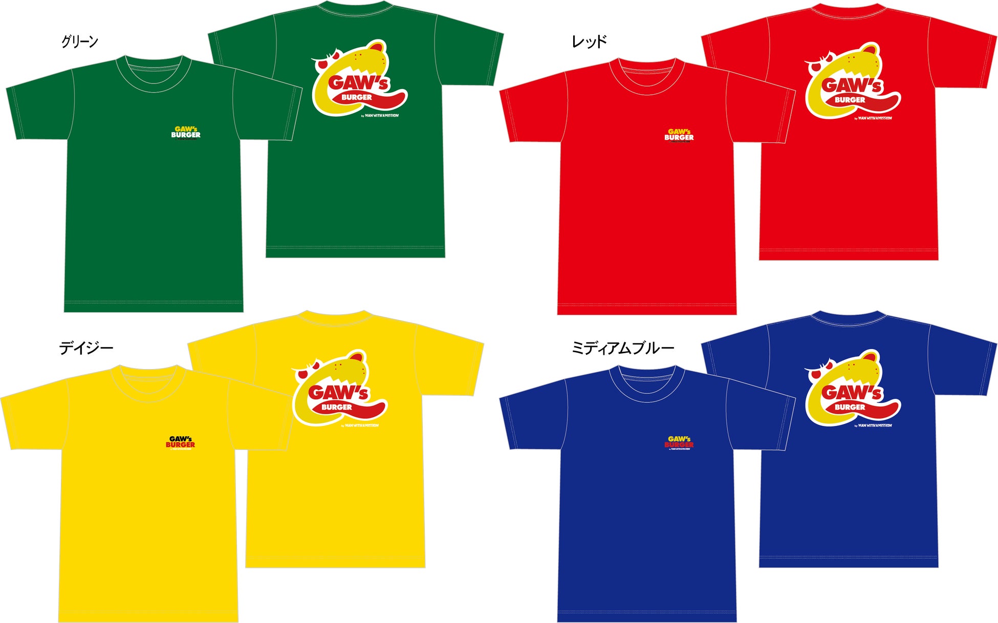 ① GAWSバーガーSHOP Tシャツ グリーン/レッド/デイジー/ミディアムブルー(3850円) 各色S~XLサイズ