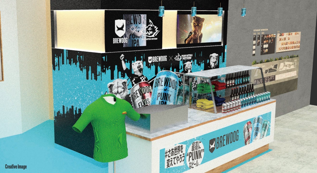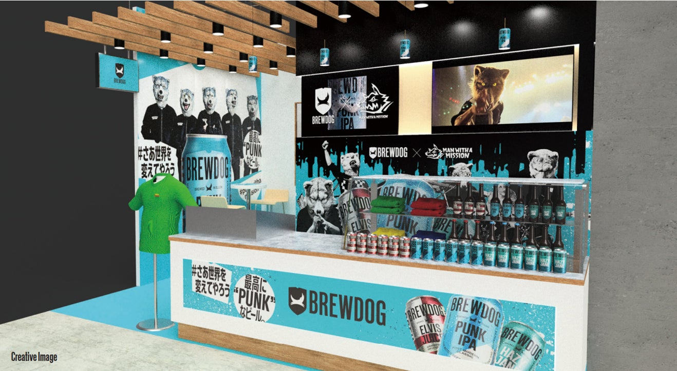 本ストアは、今春より共同でプロジェクトを立ち上げている「MAN WITH A MISSION」とのコラボレーションスポットとしても機能。ストアオープン期間中はここでしか購入が出来ない「MAN WITH A MISSION」オリジナルグッズが販売されるほか、軽快な飲み心地が特徴的なBREWDOG各種の樽生ビールを味わうことが出来る。