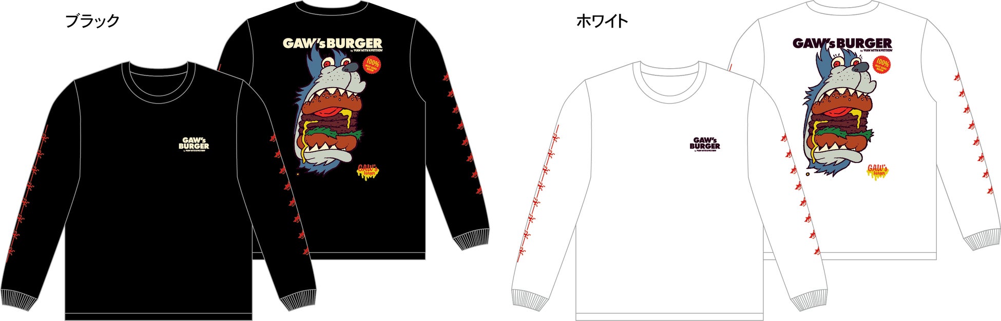 架空のホテル・HOTEL GAWFORNIA内のハンバーガーショップ[GAW’S BURGER]の商品という設定で発売される本グッズは世界先行発売商品として展開。グッズ1万円以上ご購入でキーホルダープレゼント!