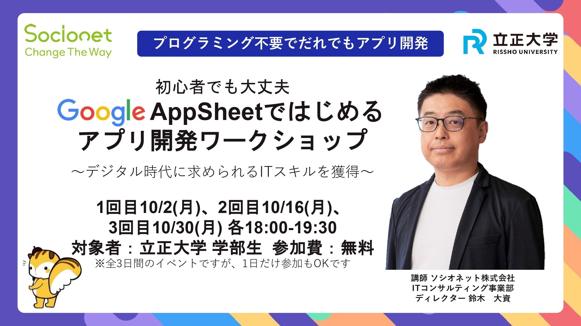 【立正大学×ソシオネット株式会社】2023年10月、学生向けAppSheetアプリ開発ワークショップを開催。