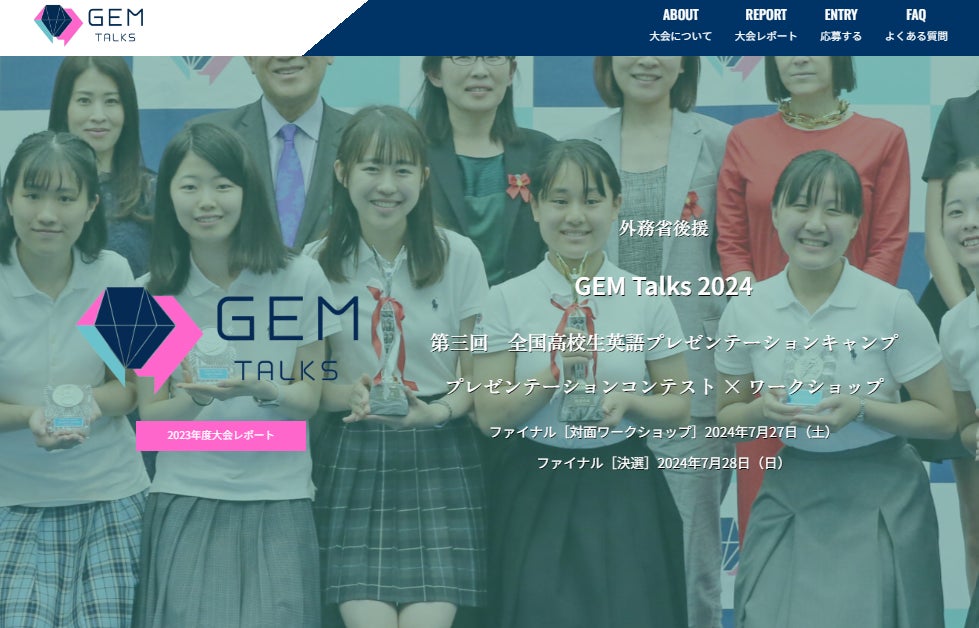 全国高校生英語プレゼンテーションキャンプ『GEM Talks』は、日本の若者世代における自己肯定感の低下や、国際人材としての発信力不足といった社会課題を背景に誕生しました。高校生が自身の志や未来構想を提言する“場”を作りたい、自身の魅力に気づき、理解を深め、磨き上げるきっかけを作りたい、という人材育成の想いのもと、プログラムを構成しています。GEM Talksの「GEM」とは、Girls’ Energy Manifestの略称であるとともに、「宝石」という意味を持ちます。高校生一人ひとりが本来持っている魅力(=宝石の原石)に気づき、夢に向かってそれを磨きながら、次世代リーダーへと羽ばたくことを願っています。またコロナ禍で希薄となった学生同士のコミュニケーション、経験を共有する“場”が大幅に減少している中、コンテスト参加を通じて、新しい横の繋がりとともに、世界を知る接点が増えることを期待しています。
