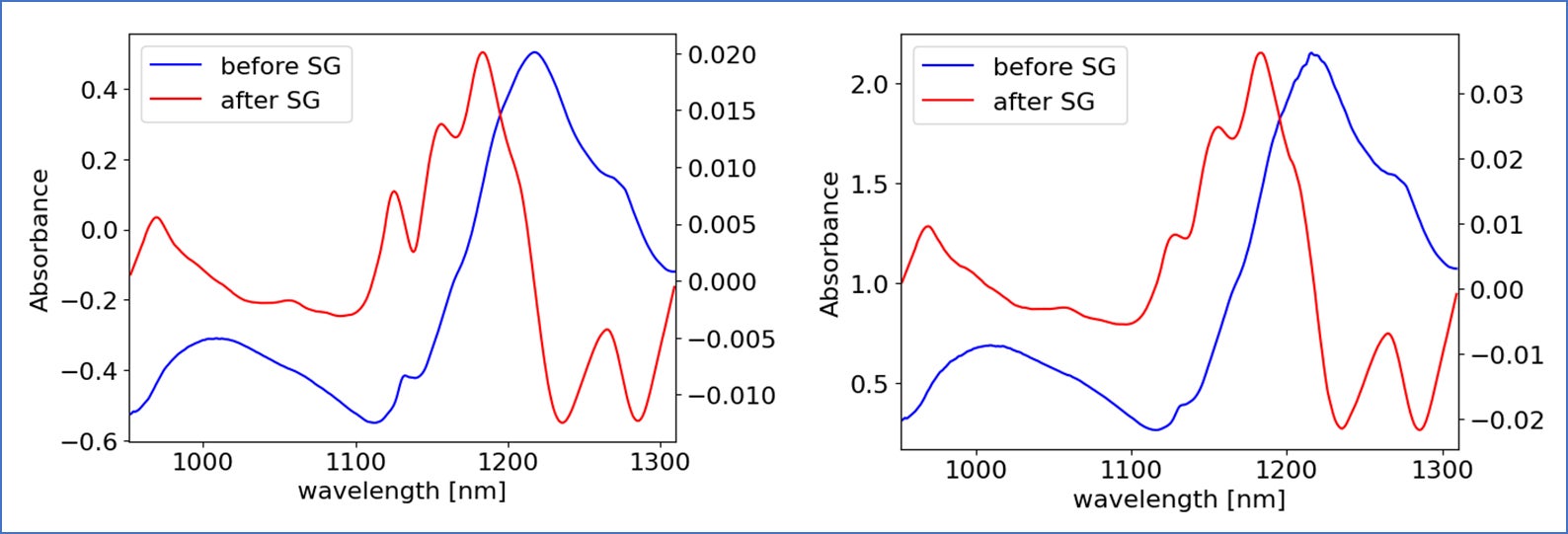 図3 SG法処理前後でのスペクトル図が出力