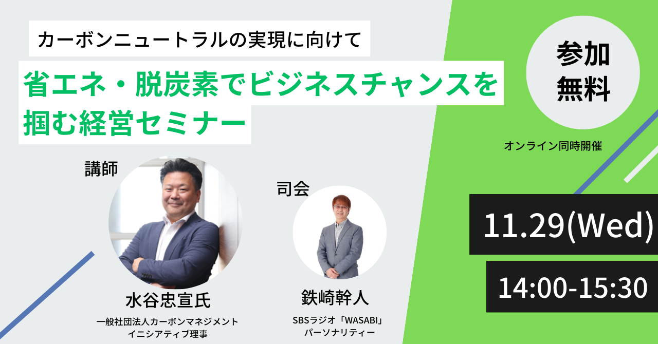 参加無料 カーボンニュートラルの実現に向けて「省エネ・脱炭素でビジネスチャンスを掴む経営セミナー」
