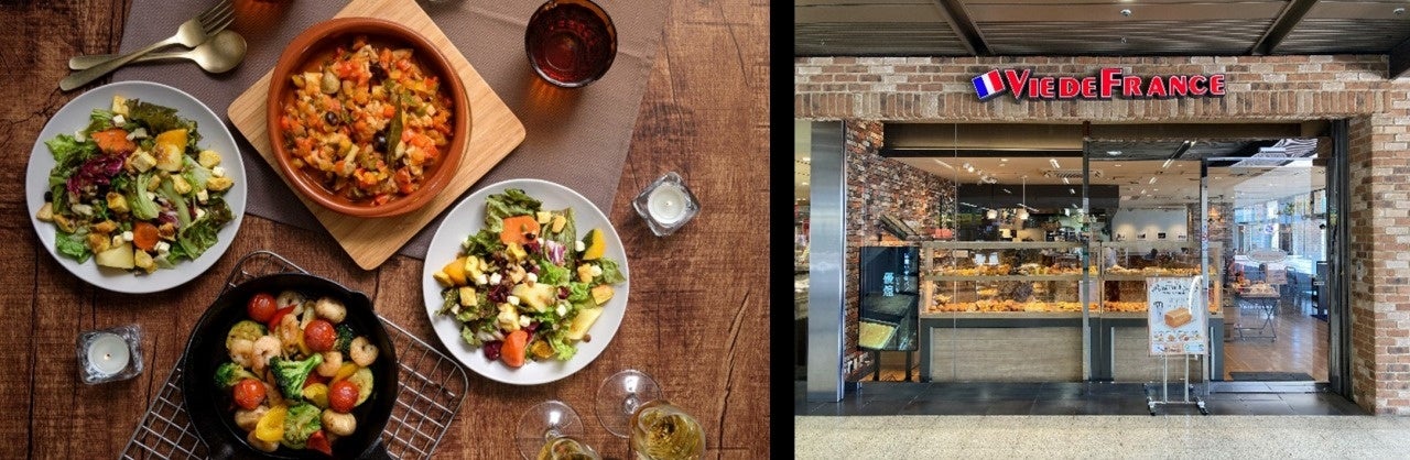 今回の業務提携は、より多くの方に「楽彩」のある生活を提案するほか、産地直送の新鮮野菜が特徴の「楽彩」がバゲットをはじめとしたベーカリーとの相性が良いという側面を訴求していきます。「海老と彩り野菜のアヒージョ風」や「彩り野菜と黒にんにくのチキンラタトゥイユ」など、ヴィ・ド・フランスの焼きたてのフランスパンとお召し上がりください。