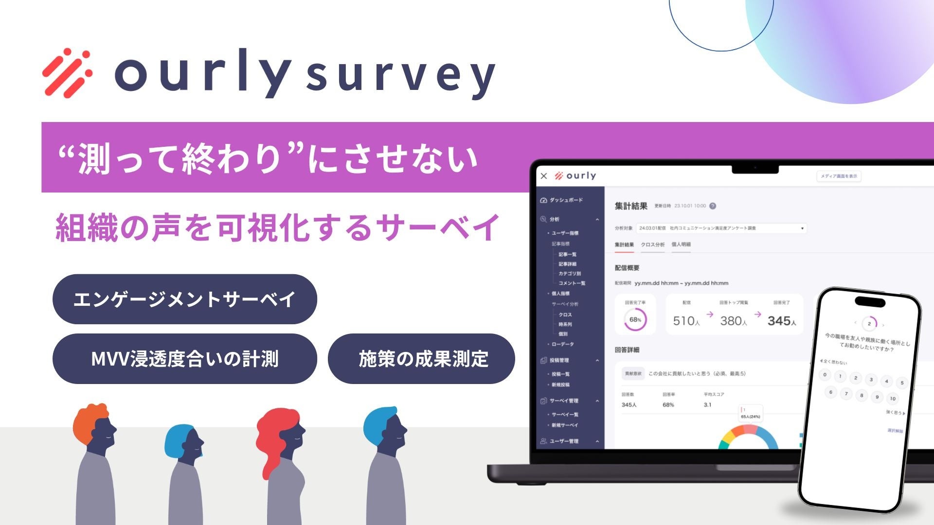 従業員エンゲージメントの向上を支援するourly株式会社が、目的に沿ったアンケート機能と集計データを用いて、最適な施策を選定できる新サービス「ourly survey(サーベイ)」をリリース。